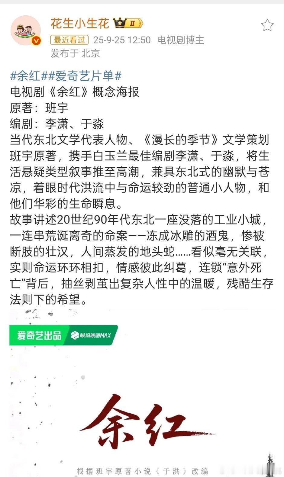 余红🍉 剧本不错,小生小花的饼,悬疑剧的老家东北[笑cry]需要东北籍演员么存子可以