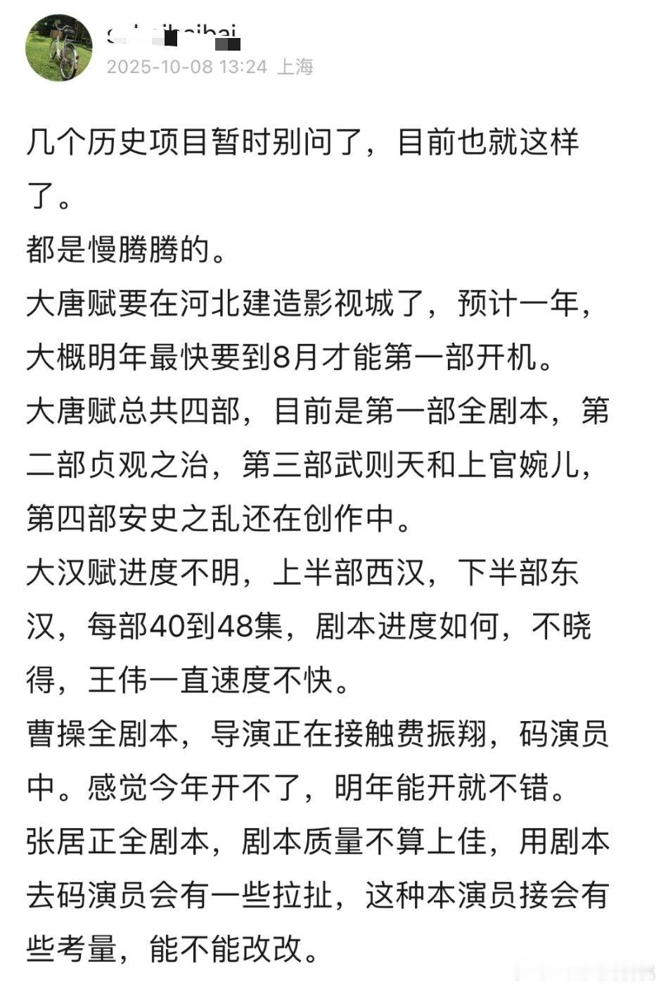 历史题材都难开,最快的大唐赋要到明年后半年了。现在历史题材感觉周期长吃力不讨好