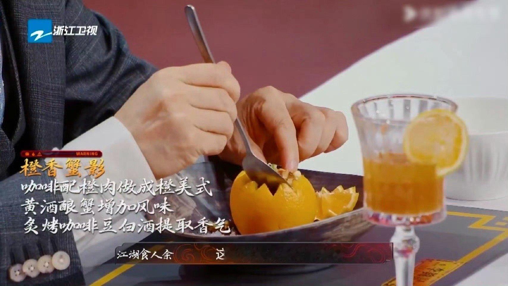 建议这道酒咖蟹酿橙卖给上海人 早咖夜酒主题被玩出花!酒咖蟹酿橙甜鲜苦香都有,仪式感拉满,上海人看了都心动!