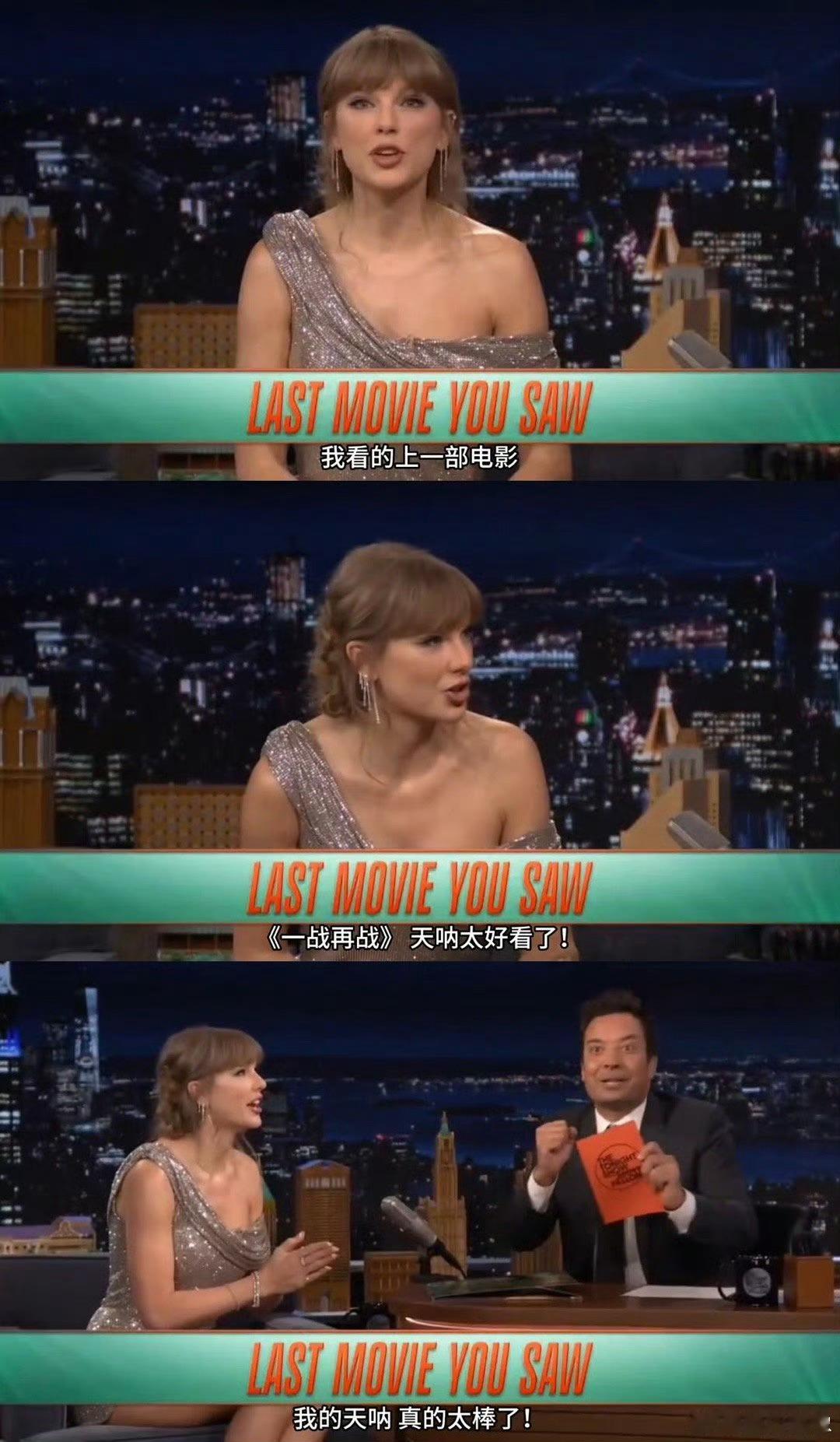 霉霉夸一战再战太搞笑了谁懂啊!霉霉在肥伦秀上安利《一战再战》像极了疯狂按头朋友的我!语速超快喊“OMG”,狂夸小李子和本尼西奥的搞笑演技,还为母女演员叫屈“该拿奥斯卡”。连配乐都被她夸“每次听都有新感觉”,直言“有PTA的世界太幸运”,霉粉+影迷直接双厨狂喜,这波安利我先冲了!