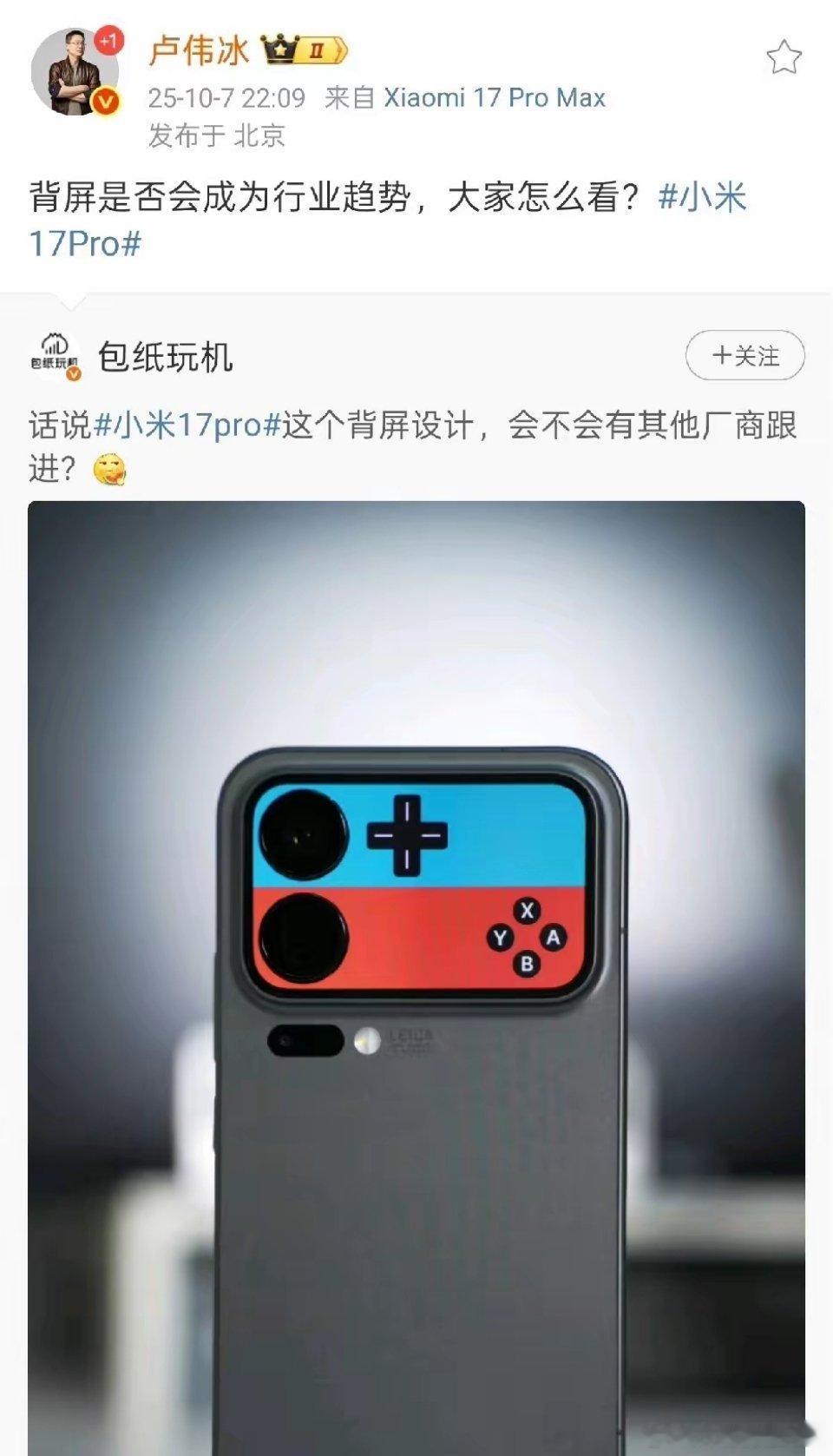 卢伟冰:大家认为背屏会成为行业趋势吗?