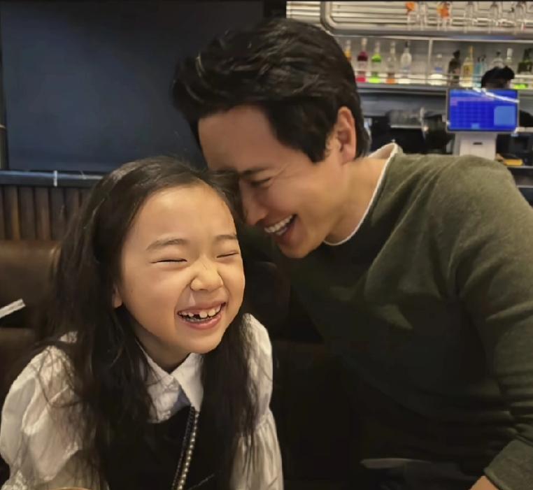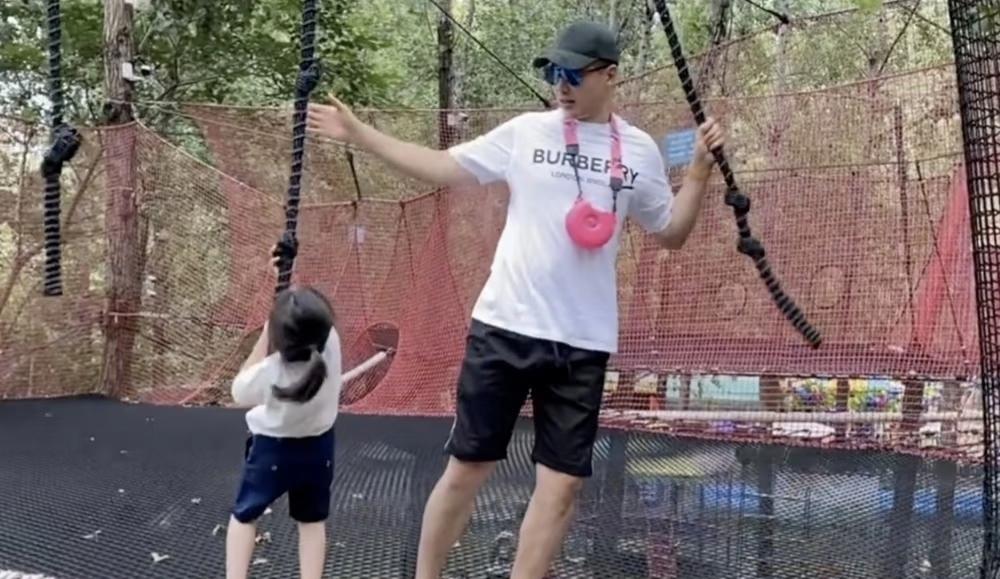 有网友在公园偶遇高云翔和小酒窝,父女俩聊的好开心!小酒窝牵着爸爸的手,扬着头,开