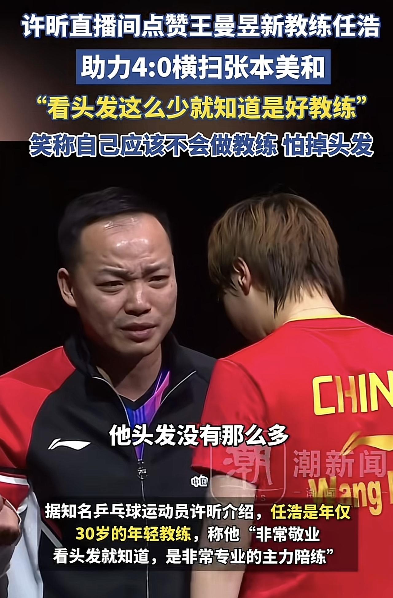 中国大满贯:“火”了 3 个人 陈俊菘:毫无疑问,收获最大的肯定是陈俊菘,击败张本智和,给国乒团队提振士气,闯入 8 强,让陈俊菘一战成名。 任浩教练:担任王曼昱的教练,有条不紊的指挥,以及头上凸起的发际线,让任浩教练一下被人记住了。 小勒布伦:闯入决赛,差点夺冠,让球迷都惊出了一身冷汗,还有来到中国,看望了陈剑教练,也让大家看到了他温情的一面。