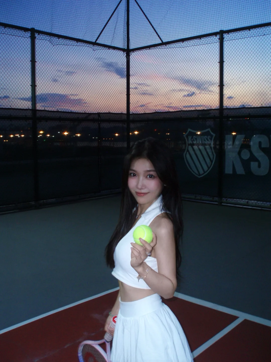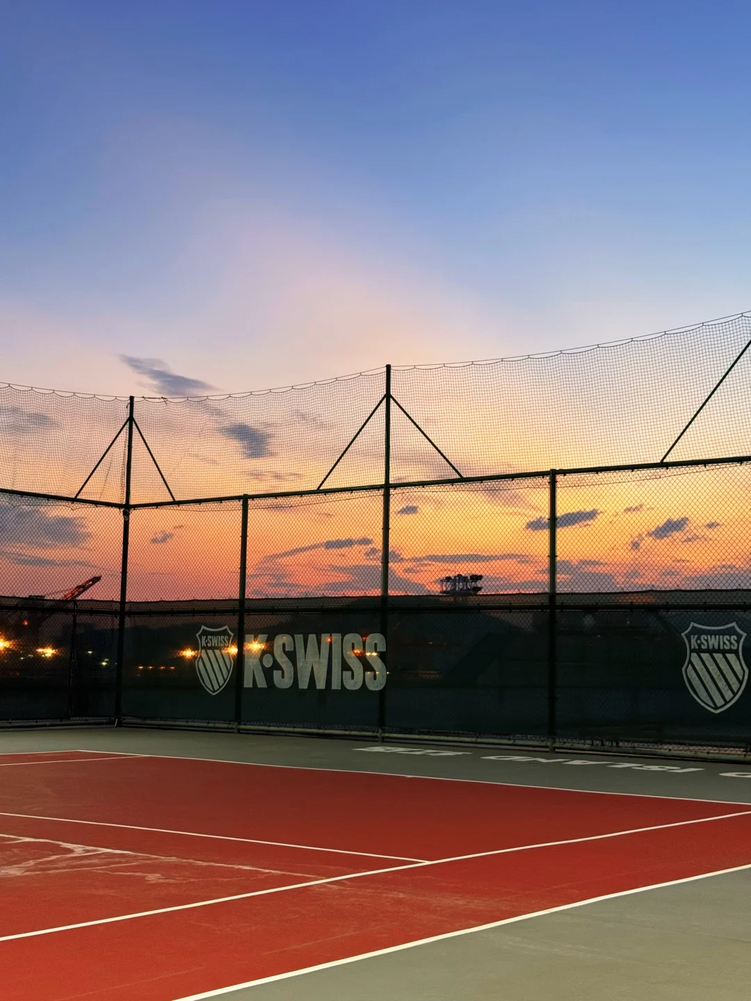 打网球真的会上瘾 谁懂阿 这个球场真的太太好看了 日落黄昏和五分钟一架的飞机✈️