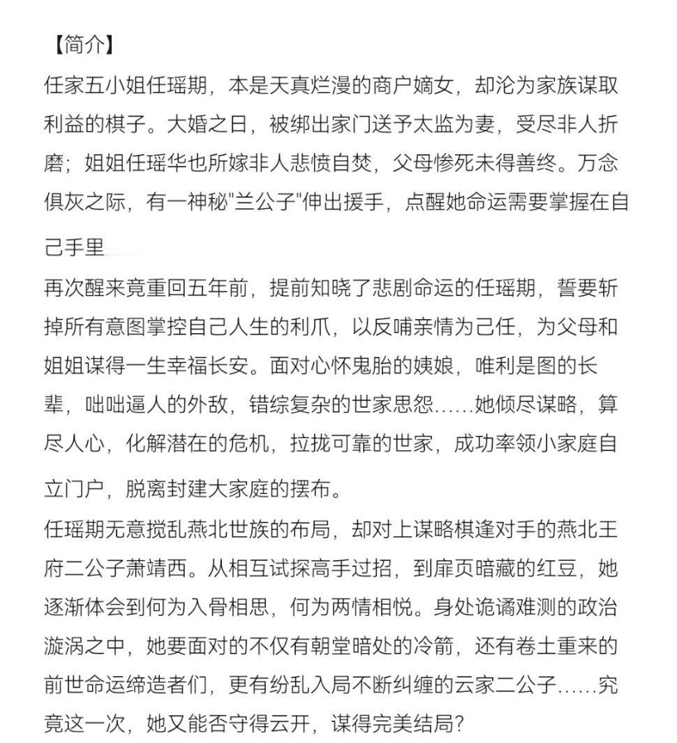 包上恩何与《嫡谋》故事简介➕人物小传,预计Q4开机