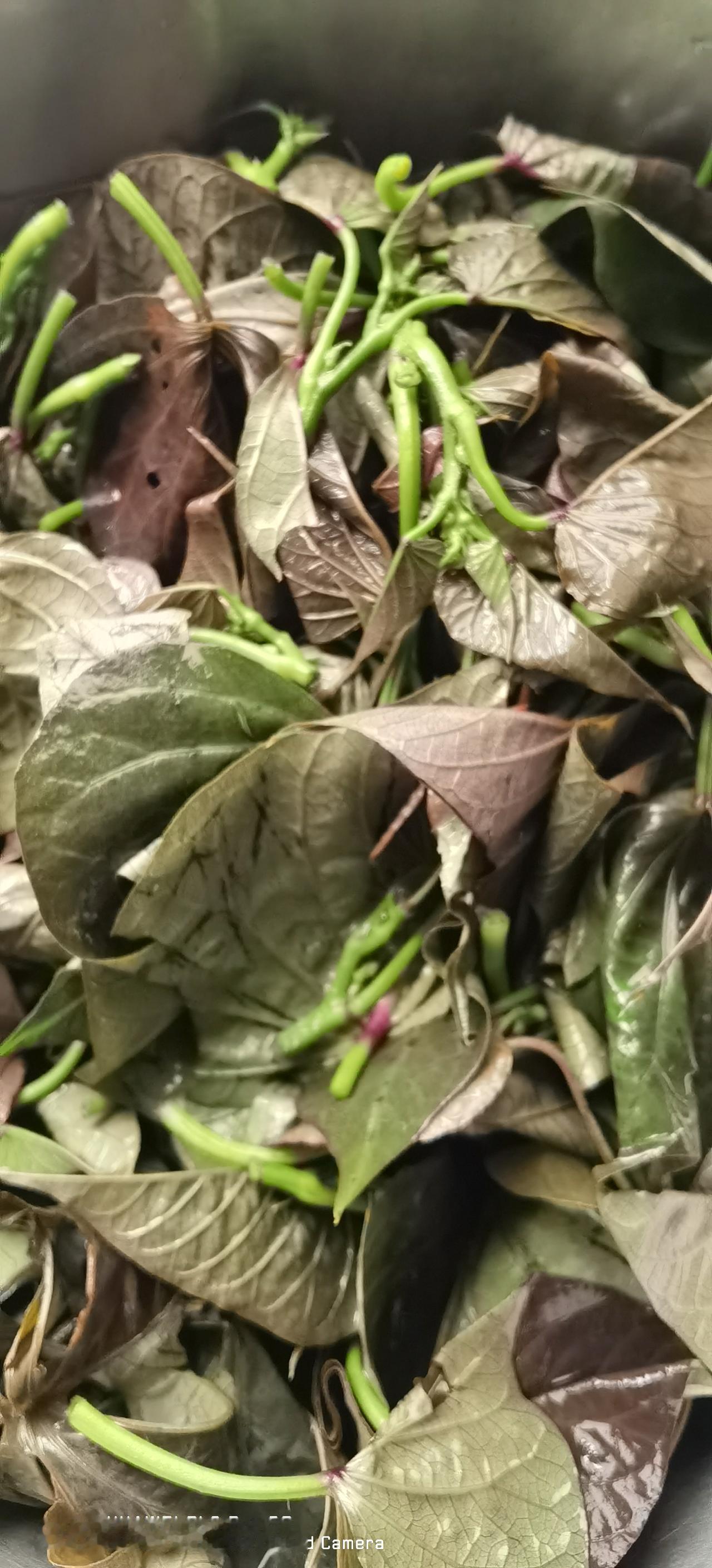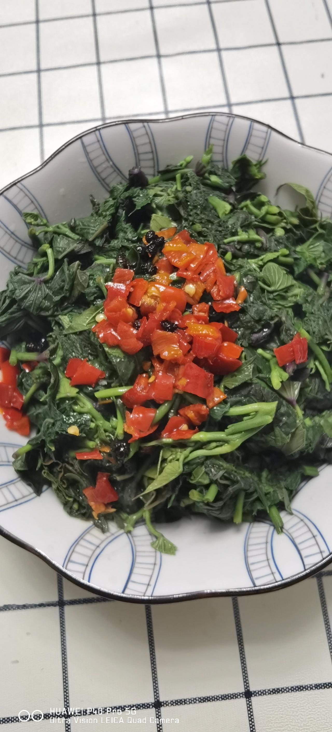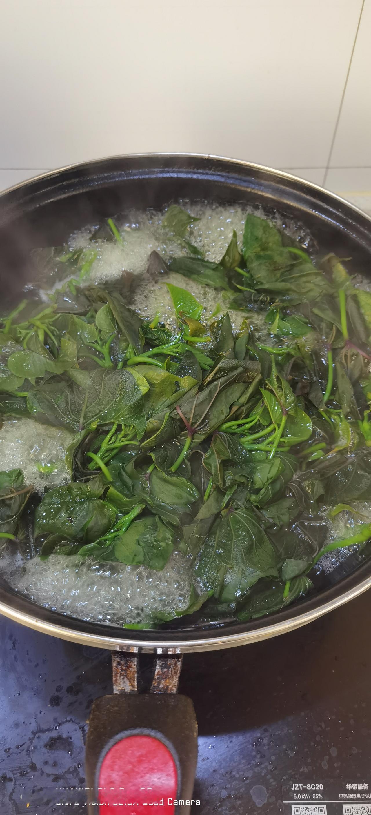前两天回乡下老家,姐姐在门前的菜地里摘了一兜鲜嫩的红薯叶,说现在人们都讲究吃这个,网上都有卖的。红薯叶过去可是当青饲料的,没想到如今有走上了餐桌。在网上查了一下,做法还真不少,看来姐姐说的没错。其实,红薯叶的确营养价值丰富,富含含维生素A、维生素C、钙、铁、钾及膳食纤维等多种营养成分。做法也比较简单,择好洗净,水烧开焯2—3分钟,捞出过凉水,挤出水分,切一下装盘。锅烧热,加入少量植物油,加入蒜末、剁椒,拌炒出香味,倒入切好的红薯叶中,再加少量盐、生抽拌匀,一道爽口的凉拌红薯叶就做好了。 红薯叶子 蒜炒红薯叶 蒜蓉地瓜叶