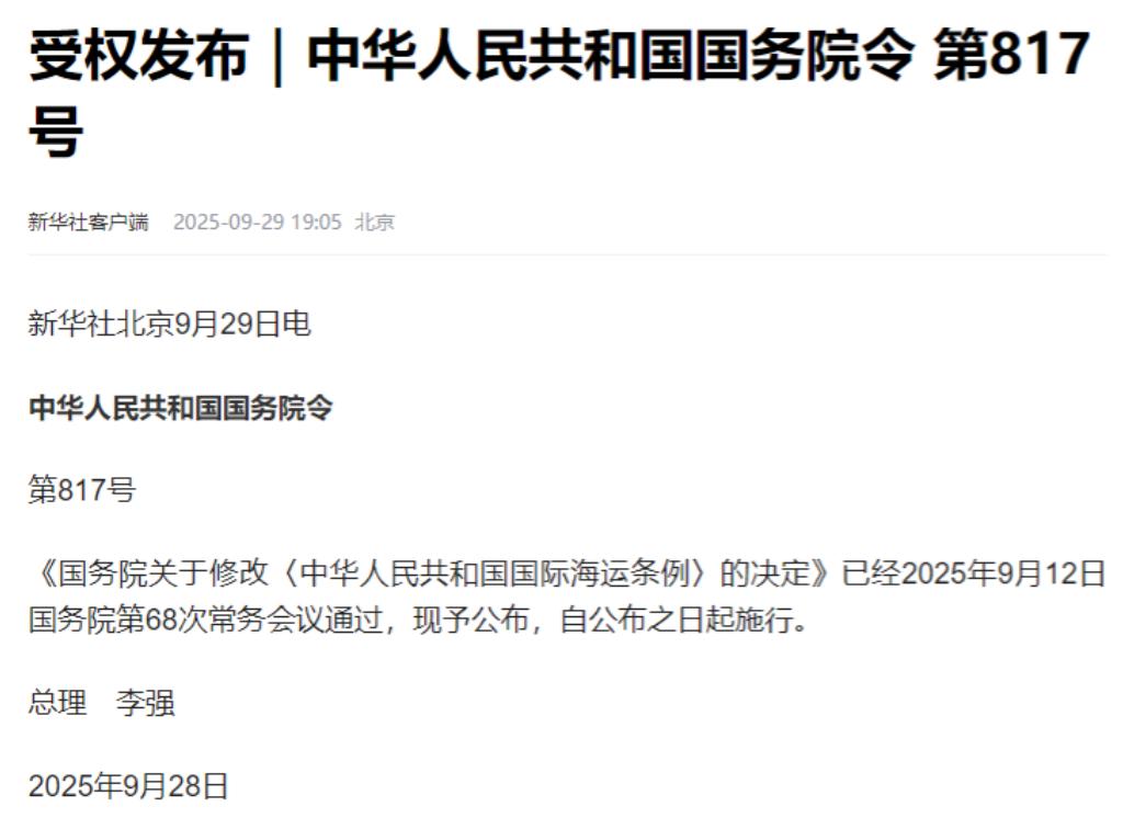 中美“海上收费战”已正式开打!美国刚宣布“拦路抢劫”,中国的“关门打狗”令,就已经下达!这不是贸易,这是“海盗行为”。 美国所谓的 “拦路抢劫”,说白了就是给进美国港口的中国相关船只设了个 “收费站”。按照美国贸易代表办公室的说法,从 10 月 14 日开始,中国船运公司的船只要进美国港口,就得按船的载重量大小交钱,一开始是每吨 50 美元,之后三年每年都涨,到 2028 年能涨到每吨 140 美元。 更过分的是,就算是外国船运公司,只要船队里有中国造的船,也得按比例交费,比如船队里中国造的船占一半以上,每次进港就要交 100 万美元。之前他们还计划过更高的费用,一艘船最多可能要交 350 万美元,后来因为反对声太大才改了,但算下来,全球差不多 98% 的船都得交这笔冤枉钱。 那美国为啥非要干这吃力不讨好的事呢?核心是想把自己的造船业扶起来。这些年中国造船业发展太快,从几十年前占全球 5% 的份额,涨到现在超过一半,而美国造船业早就不行了,去年全年造的商船还不到 10 艘,全球份额才 0.1%。 美国觉得是中国用了 “不公平” 的办法抢了生意,就拿所谓的 “国家补贴” 说事,借着自己的 301 贸易条款搞调查,想靠收费把船东们逼得不敢用中国船、不敢找中国造船,这样美国船厂才有生意。另外他们还打了小算盘,觉得收费能增加收入,顺便遏制中国的海上运输实力。 面对这明摆着的欺负人,中国当然不能坐视不理,很快就下了 “关门打狗” 令,而且比美国的政策先生效,9 月 30 日就开始实施了。这可不是瞎咋呼,是实实在在改了《国际海运条例》,给反制装上了 “牙齿”。新条例里明确说了,只要哪个国家对中国海运搞歧视性措施,中国就能依法反击。 具体的反制手段有四条:可以给对方船只收特别费用,能禁止对方船只进中国港口,还能限制他们获取中国的海运信息,甚至不让他们在中国做海运相关生意。中国还特意把国际航运交易平台纳入监管,防止有人搞小动作,确保监管能管到实处。 这反制措施看着不声张,其实妙处太多了。其一是占了理,中国的反制只针对搞歧视的国家,完全是防御性的,不像美国那样乱收费,国际上都看得明白谁在不讲理。其二是打在了美国的痛处,美国本来指望收费逼船东离开中国,可全球船东根本不买账,地中海航运、马士基这些大公司还在给中国船厂下订单,因为中国造船技术好、性价比高,不是美国能替代的。 而且美国自己的麻烦更大,中国出口美国的都是日用品、电子产品这些老百姓离不开的东西,收费会让运输成本涨上去,最后还是美国消费者买单,通胀肯定得更严重。 更妙的是,中国这招还稳住了自己的市场。美国港口协会都担心,收费会让美国港口业务下滑,小航运公司可能直接破产,因为他们交不起钱只能退出美国航线。而中国早就引导企业把运力转到亚洲、非洲这些 “一带一路” 市场,就算少做美国生意也不受大影响。 反观美国,想靠单边收费搞垄断,结果把自己的港口、航运公司和消费者都坑了。现在全球航运格局都在变,美国这步臭棋不仅没扶起自己的造船业,反而让更多人看清了他们的保护主义本质,最后只能是搬起石头砸自己的脚。