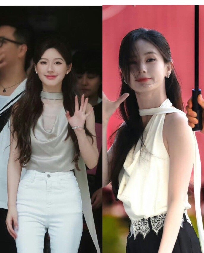 看了网友发的对比图,确实挺像的,好几套造型发型穿着颜色,都几乎雷同! ​​​