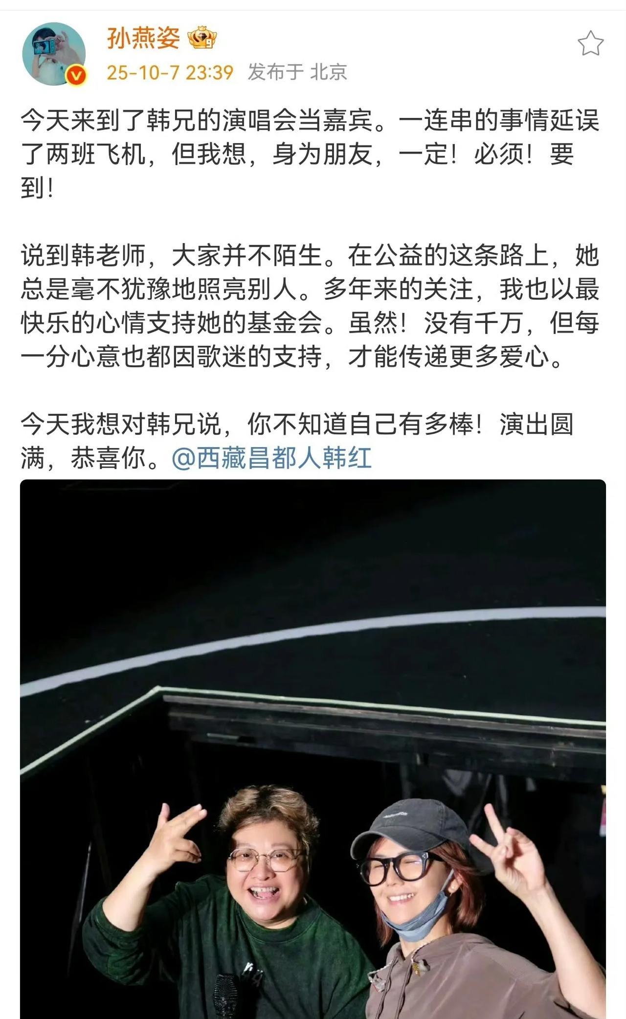 孙燕姿回应匿名捐款超千万!她的坦诚比数字更动人!我们总以为,明星做公益晒数字才是常态,可孙燕姿偏不——她被好友韩红“爆料”匿名捐款超千万后,第一反应竟是澄清金额,原来,韩红在演唱会感动透露,孙燕姿多年以“孙女士”匿名捐款,还带病赶早班机支持她。但孙燕姿的回应更见真心:她坦言“没有千万”,并把善行归功于歌迷的支持,她匿名捐款、婉拒署名的态度,远比千万数字更珍贵。#孙燕姿回应“多年匿名捐款超千万”# #孙燕姿合集# #孙燕姿唱歌# #孙燕姿风筝# #孙燕姿出场费# #孙燕姿身高#