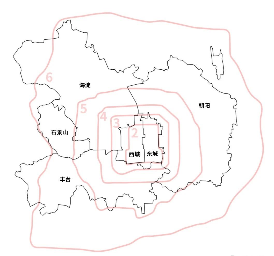 关于北京的10条冷知识: 北京有16个区,5条环线环路。 (1)二环路只途经东城、西城2个区,但东西城的范围比二环路大,甚至有一部分位于三环以外; (2)三环路途经东城、西城、朝阳、海淀、丰台等5个区。百度百科说三环路只途经“海淀、西城、朝阳、丰台四区”,这是错误的!东城的安定路20号院、安贞苑、安定路小区等社区是位于北三环以外的! (3)四环路途经海淀、朝阳、丰台等3个区,在南四环榴乡桥东侧还有一小段和大兴区贴临; (4)五环路途经海淀、朝阳、大兴、丰台、石景山等5个区。五环一般被认为是北京城区和郊区的分界线,比如北京的机动车尾号限行措施就是以五环为界,北京购房资格的相关政策也是以五环为界(符合条件的家庭购买五环外商品房不限套数,购买五环内商品房则是京籍家庭限购2套、符合条件的非京籍家庭限购1套); (5)六环路途经海淀、昌平、顺义、通州、大兴、房山、门头沟、丰台、石景山等9个区; (6)城六区中,有3个区全境位于六环路以内,它们是:东城、西城、朝阳。此外,石景山的绝大部分(目测95%以上)也都位于六环路以内,只有永定河西岸的双峪路地区位于六环外; (7)城六区中,只有石景山区和东西城不接壤,其他5个区要么和东西城接壤,要么干脆就是东西城本尊。更有甚者,石景山区甚至没有任何一部分位于四环路以内,全境都在四环外!莫非这就是石景山在城六区中存在感最低的原因? (8)近郊六区中,只有大兴区有一部分位于五环以内,包括狼垡、旧宫、西红门、五福堂等区域。特别是西红门板块,由于其独特的地理优势,现在大兴楼市最引人瞩目的几个新盘(中建玖玥府、西红门橡树湾、壹品兴创·元启等)都位于西红门; (9)即便是六环路,也没有途经远郊四区中的任何一个。远郊四区中距六环最近的地方是怀柔的沙峪口村,距北六环酸枣岭桥直线距离约11.5公里; (10)六环路距北京市界最近的地方位于东六环中坝河桥附近,距河北省三河市直线距离约4.5公里;其次是南六环长阳桥,距河北省涿州市直线距离不足12公里。