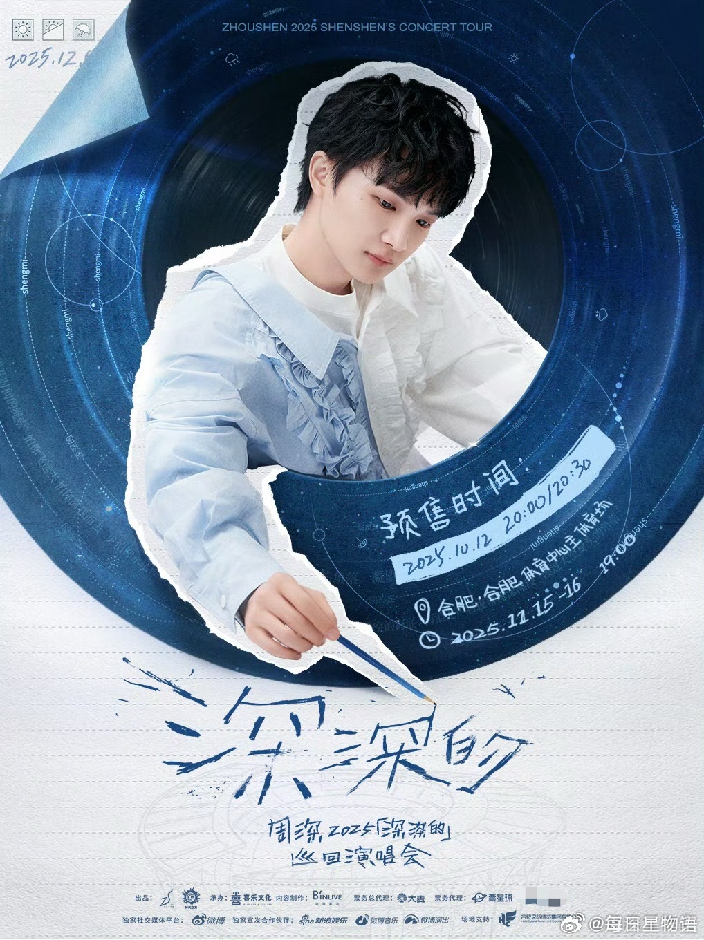 周深合肥演唱会10月12日晚20:00,记得打开售票平台。周深将在11月于合