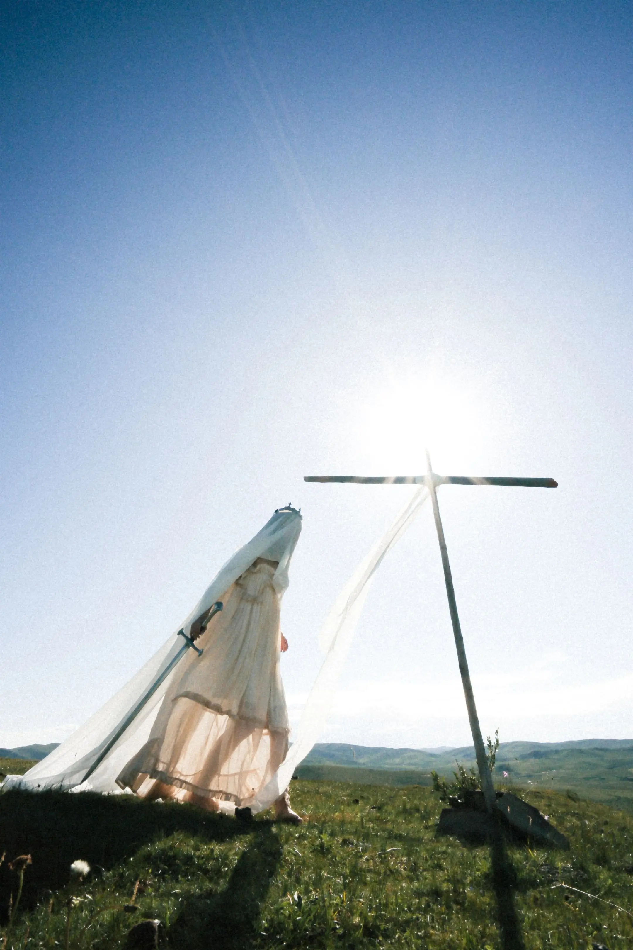 他们信仰上帝,而我渴望的是怒放的生命力。国庆节假期封神之作。拍摄于松潘县镰刀坝大草原,国庆节出游我只去野的地方没人的地方。这组照片其实是无意之间得到的,这个木桩是临时自己做的,是小哥哥帮我们捡到木棍我用布条绑的。
