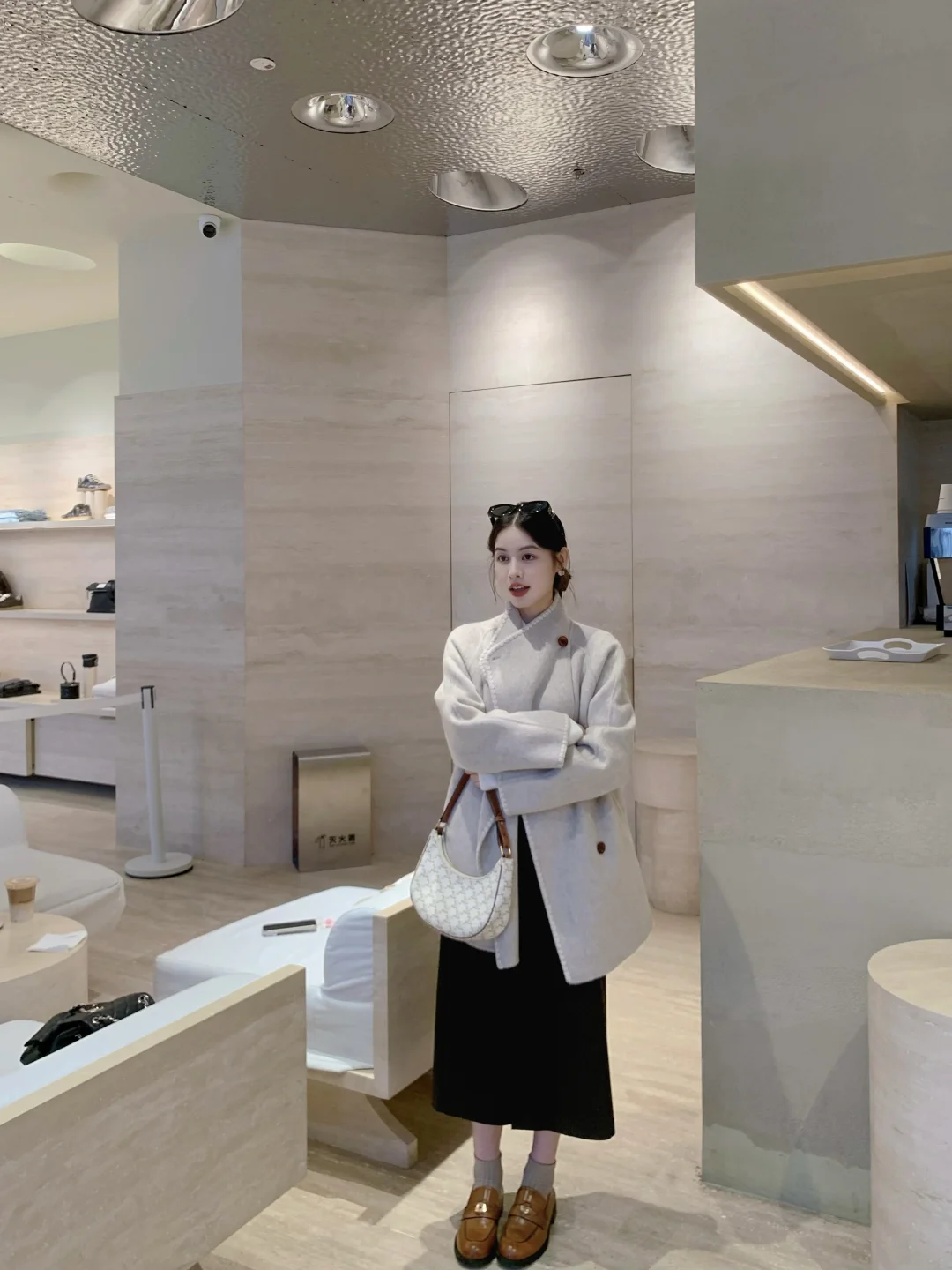 留洋千金👒穿上忍不住想转圈圈的大衣超大裙摆💃