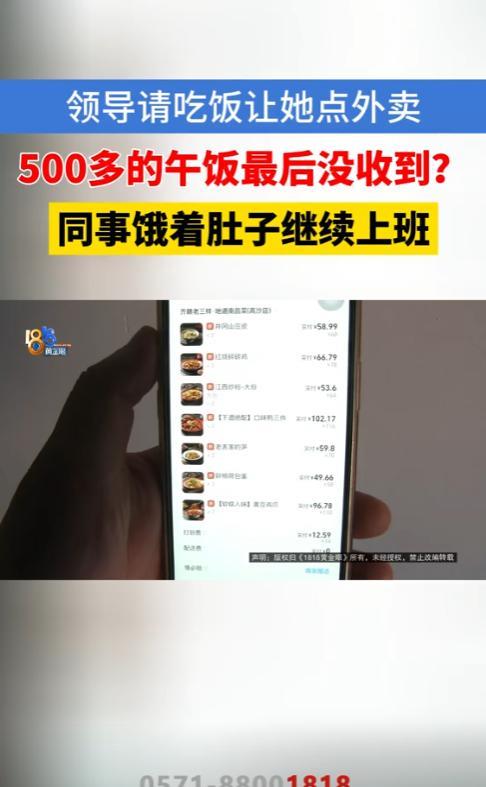 浙江杭州,领导请同事们吃饭,让女子帮忙点了500多元的外卖午餐。下单后,女子因为