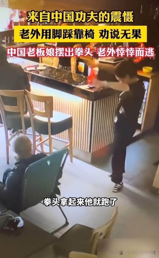 老外来中国 ,对店家的老板的躺椅又踩又坐,被老板娘挥拳 赶走。 事情的起因是老板娘在店里面有一个躺椅,自己时常在上面坐躺。 可一个老外在门外看到,这躺椅顿时心下好奇,走进来用脚踩了几下,看看支撑牢不牢固。 老板娘看见以后,心生不快。让他不要踩,表示这是自己的躺椅你不要动,做人要有素质。 结果老板娘转身回店里的时候,这个老外又回来,直接躺上面了。 气的老板娘直接挥拳把他赶跑,当然只是吓一吓,并没有真的发生肢体冲突。 只是这种,没有边界,随便的动别人东西,真的很讨厌。