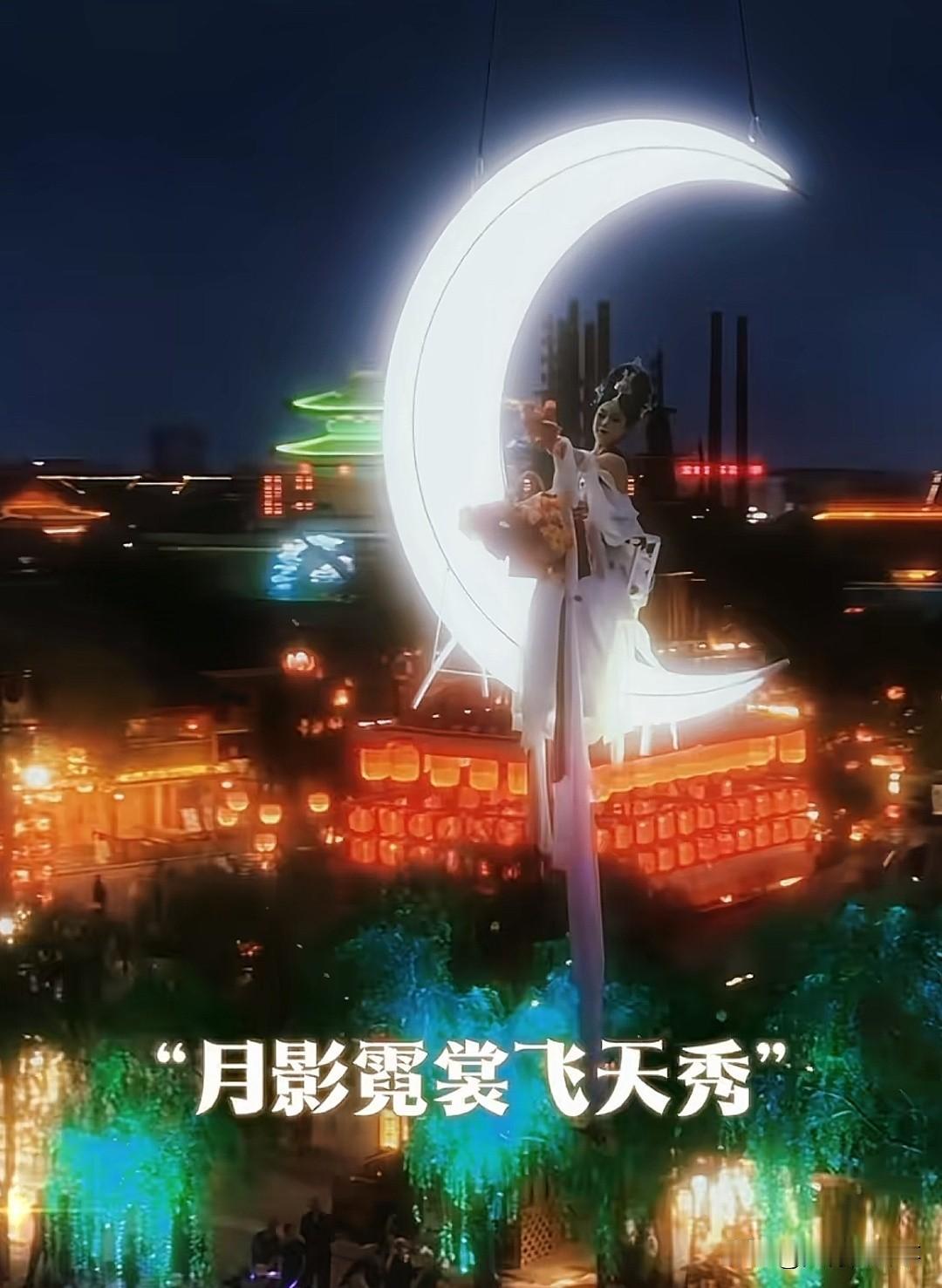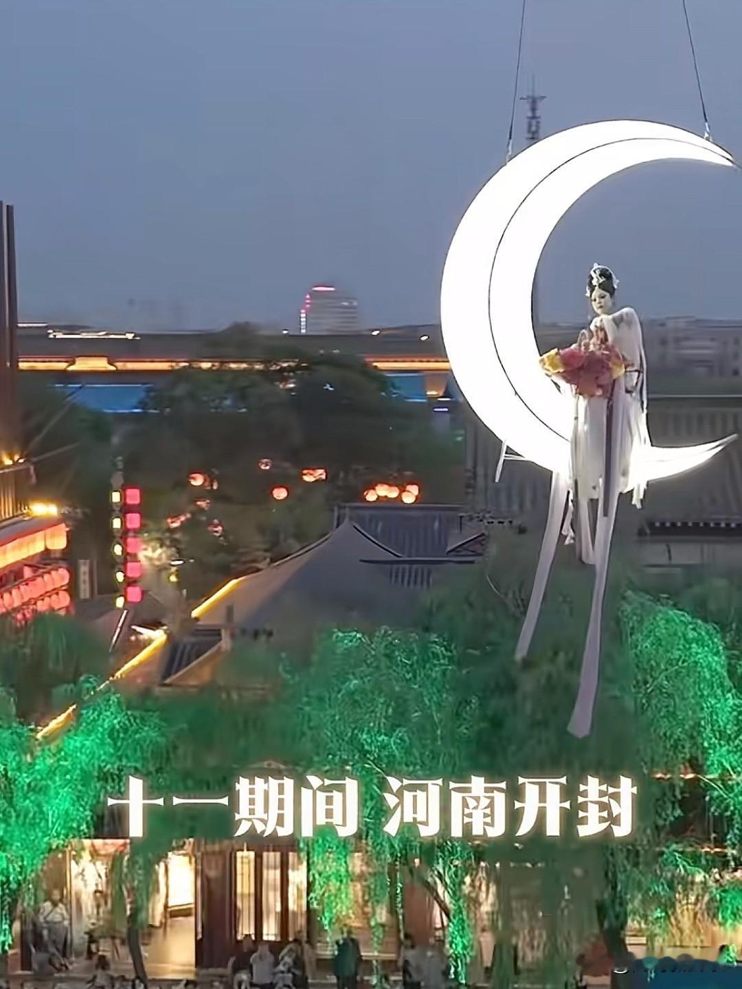 “十一去河南开封的朋友赚疯了!仙女踩着发光月亮飞天,凤凰在水面上流光展翅,这场景