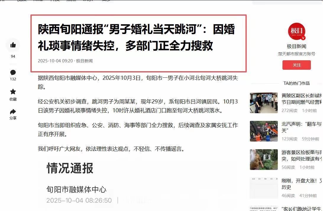 婚事变丧事,喜事变白事。 大喜的日子,新郎却决绝地跳入冰冷的河水里,转瞬便被河水所淹没不见了踪影。 大好的生命就此戛然而止,徒留父母悲痛欲绝。 这样的场景,令人扼腕叹息,也让人不禁深思:人生究竟有多少“意料之外”在等待着我们?每一次的喜悦,似乎都在不经意间被阴影拉扯得支离破碎。我们习惯了用理智去规划未来,却忘了,生命的脆弱和无常,远远超出了我们的预料。 有人说,人生就像一场戏,高潮不断,低谷时刻也在不经意间降临。而这对新人的故事,却似乎让我们看到了“喜事变丧事”的无情现实。喜悦的日子,本应是亲朋好友齐聚一堂,为新人的未来祝福的时刻,却变成了悲伤的场景。那一瞬间的绝望,像是一场无声的控诉:生命的无常,让我们每个人都变得如此渺小。 但更让人难以释怀的,或许不是悲剧本身,而是背后的人性和社会的反应。父母的悲痛、群众的惋惜,仿佛在提醒我们:生命没有彩排,每一次的相遇都值得我们用心去珍惜。可是,很多时候,我们忙着追逐所谓的幸福,忽略了身边的细节,忽略了生命中那些微小的幸福时刻。直到某天,才发现,那些被我们忽略的幸福,才是最真实、最宝贵的财富。 这故事让人不禁反思:我们是不是也在用一颗浮躁的心,错过了许多本该用心去感受的瞬间?也许,每个人都曾在心底偷偷祈祷:不要让悲剧降临到我身边。但现实却告诉我们,生命的脆弱,没有任何预兆。我们无法预测下一秒会发生什么,但可以选择用更温暖的心去面对每一个当下。 有人说,生命的意义在于爱与陪伴。无论是喜事还是丧事,都在提醒我们:珍惜当下,善待身边的人。或许,我们不能改变突如其来的不幸,但可以在有限的时间里,传递更多的温暖和善意。因为,生命的价值,不在于它的长度,而在于它的宽度和深度。 让我们从这个悲剧中汲取教训,不是为了害怕,而是为了更好地活在当下。每一次的相遇,都值得我们用全部的真心去对待,因为,生命本身,就是一场值得用心去珍藏的奇迹。婚礼前新郎跳河 婚礼跳河 婚礼前跳河 丧事新办 新郎新婚出走