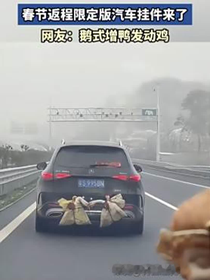 国庆返程高速上的“活禽车队”:车后挂着的不是鸡鸭,是父母装不下的爱 国庆假期最后一天的高速路,永远不缺让人会心一笑的画面。今年10月8日,不少网友的行车记录仪里,多了些特别的“同行者”——有的轿车尾门用红绳吊着两只扑腾的活鸭,鸭掌还沾着老家池塘的泥;有的SUV后窗绑着竹笼,里面的土鸡时不时探出头叫两声;更有面包车侧面挂着串成排的大鹅,雪白的羽毛在风里晃悠,被网友调侃成“移动的农家院”。 起初,这些画面在社交平台上刷屏时,满屏都是“笑不活了”的评论。有人开玩笑说“这是‘后置发动鸡’顶配版”,有人调侃“车主怕不是把老家的养殖场搬空了”,可笑着笑着,评论区的画风慢慢变了。有位网友说:“我妈昨天也是这样,非要把家里养了半年的鸡塞给我,我说城里不好处理,她却蹲在地上帮我拔毛,说‘处理干净了,你冻在冰箱里能吃好久’。” 其实谁都知道,超市里能买到新鲜的鸡鸭,可父母偏要费力气把活禽绑在车后。那不是嫌超市的肉不好,而是他们觉得,自己养的鸡吃的是玉米,下的蛋是土味,孩子带着这些“老家的味道”,就像还在自己身边一样。哪怕孩子说“这样不安全”,他们还是会偷偷把东西塞进行李箱,再叮嘱一句“路上慢点开,到了给我打电话”。 不过话说回来,感动归感动,安全还是要放在第一位。高速上车速快,活禽要是挣脱了绳子,很可能会影响后车行驶;绑在车窗上的笼子挡住视线,也容易引发事故。有交警在服务区遇到过这样的车主,一边帮忙重新固定笼子,一边笑着说“阿姨的心意我们懂,但咱们得让孩子平平安安到家才行”。后来车主给父母打电话,电话里妈妈还在念叨“早知道我就提前杀好冻起来了,害你们在路上耽误时间”。 说到底,那些挂在车后的鸡鸭大鹅,装的哪里是肉,分明是父母沉甸甸的牵挂。就像有位网友说的:“每次返程,后备箱里装的不是东西,是我妈觉得我在外面会受委屈的心疼。”只是下次再带这些“心意”时,咱们可以提前处理好,既能带着老家的温暖,也能让路上多一份安全。你返程的时候,父母有没有给你塞过什么特别的东西?评论区说说你的故事吧~国庆返程见闻 返程见闻