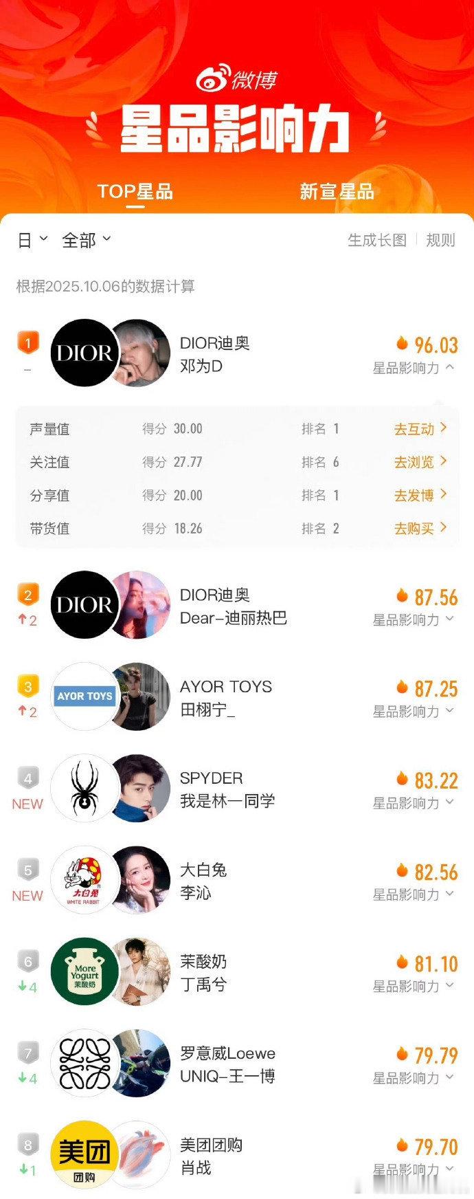 邓为星品影响力top1 邓为dior登顶星品影响力