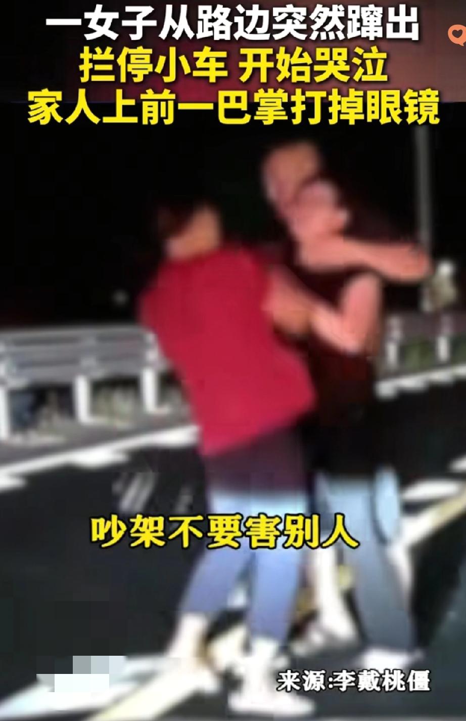 浙江深夜那事儿看得人后背一凉—— 黑衣姑娘哭着就往马路中间冲,直接逼停正在开的车,旁边高壮的男生拉都拉不住,最后还是她妈冲上去一巴掌,眼镜都扇碎了,吼着“要吵架别害别人”! 这巴掌看着解气,但我觉得更该琢磨琢磨背后的事儿。 司机师傅都说吓坏了,车上还带着孕妇呢! 刚过人行道车速慢才没出事,要是快一点,后果想都不敢想。 有人说姑娘是不是在求救,可真要求救,跑车边说清楚多好,站车前一动不动,这不反而把自己和别人都置于危险里了? 还有那男生,看着壮实却拉不住,其实不是力气不够,是情绪上头的时候,硬拉根本没用,得先稳住劲儿才行。 说到底,再委屈也不能拿公共安全撒气,自己的情绪别变成别人的噩梦。 你们说,要是碰到有人这么冲动,除了及时制止,咱还能咋帮着稳住TA的情绪?评论区聊聊你的招儿!