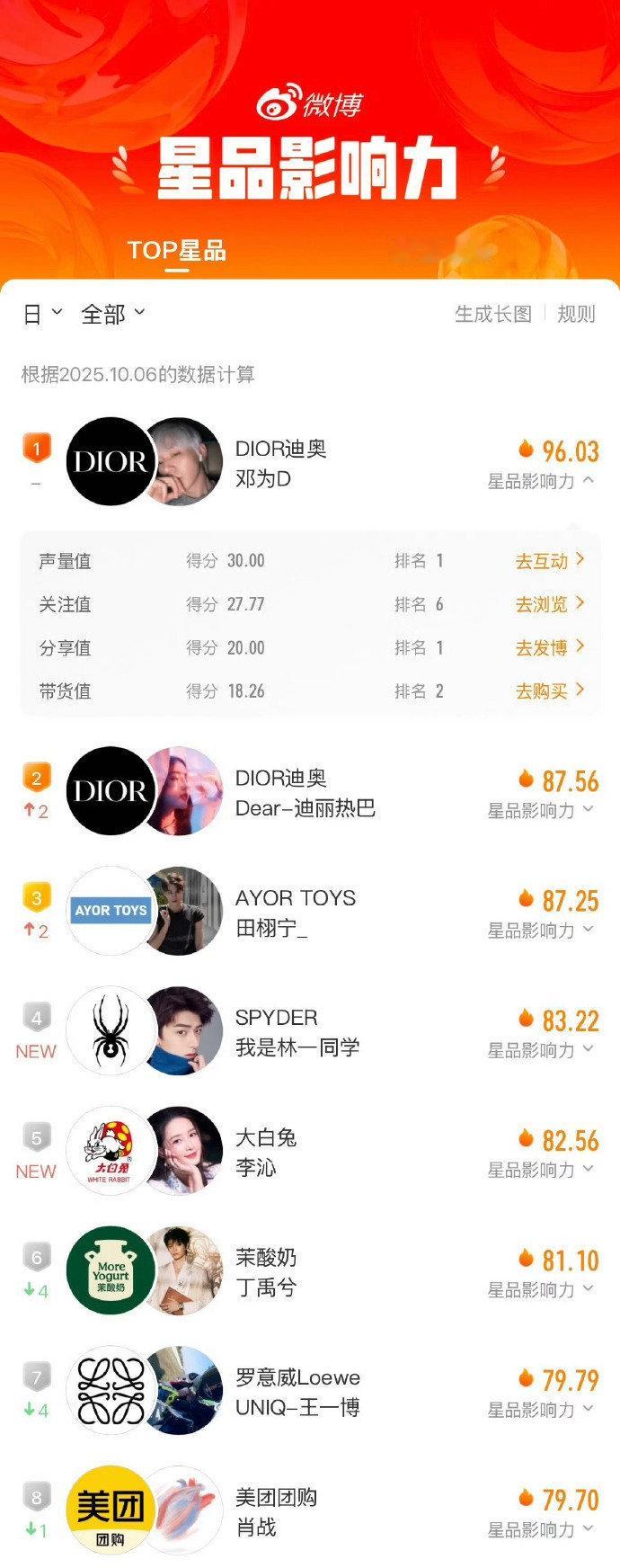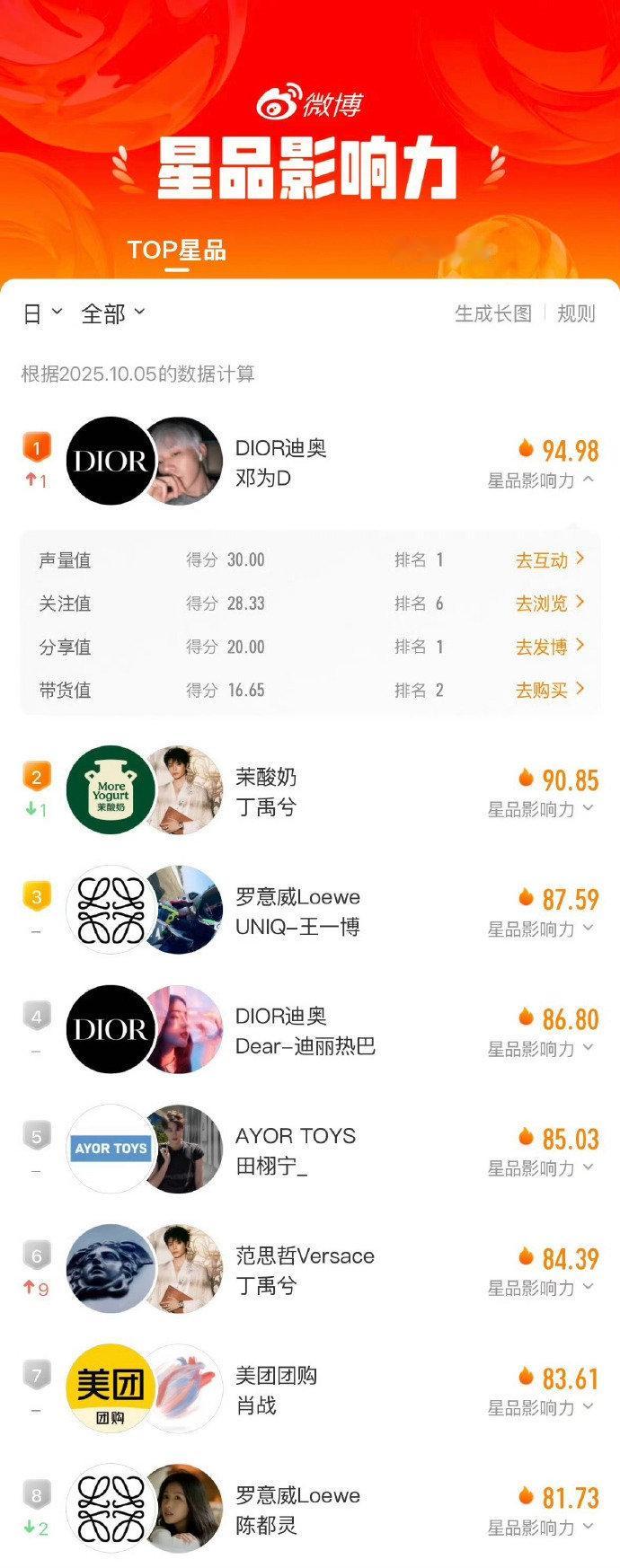 邓为星品影响力top1 邓为dior登顶星品影响力