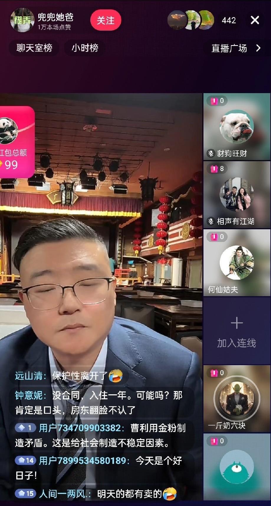赵立同已经去广茗阁收房了,也在广茗阁里面直播了,听云轩的演员还没来,金粉就剩嘴硬了。 兜兜她爸已经在广茗阁里面直播了,坐等听云轩演员来演出,金粉还在广茗阁门口直播呢,赵立同从他面前过,他都不认识人家是谁。 曹云金8点直播,看看怎么说。 现在就等看热闹了,看看听云轩的演员敢不敢来了,自己有没有合同,底气硬不硬,自己知道。#赵立同已经去广茗阁收房了#