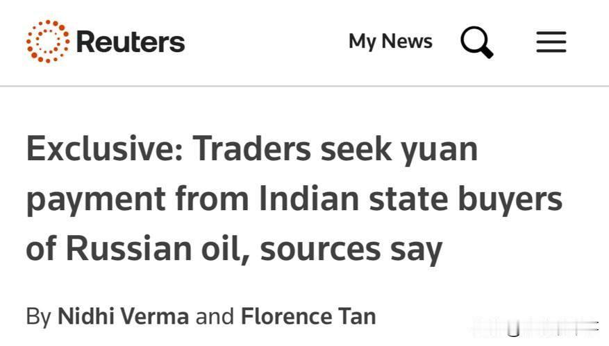 🇮🇳🇷🇺🇨🇳印度开始用人民币支付俄罗斯石油款项以规避制裁 — 路透社 ▪️在西方制裁背景下,人民币结算使印度国有企业更容易获得俄罗斯石油。。 ▪️贸易商建议使用人民币支付,以简化交易并避免昂贵的卢布兑换。 ▪️此前此类结算仅限于私营公司。 印度俄油进口 卢布人民币 印度俄油采购 卢比贬值 俄罗斯收付结算 印度油 印俄石油