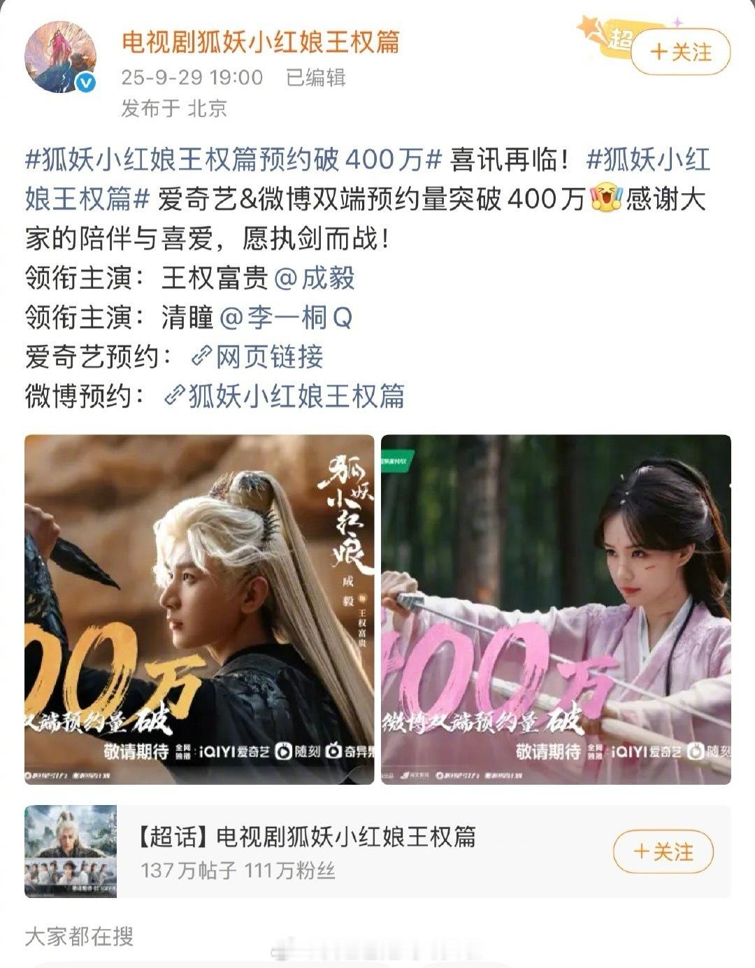 赴山海刚播完,长安二十四计 和狐妖小红娘王权篇 就要来了,目前宣传也越来越密。