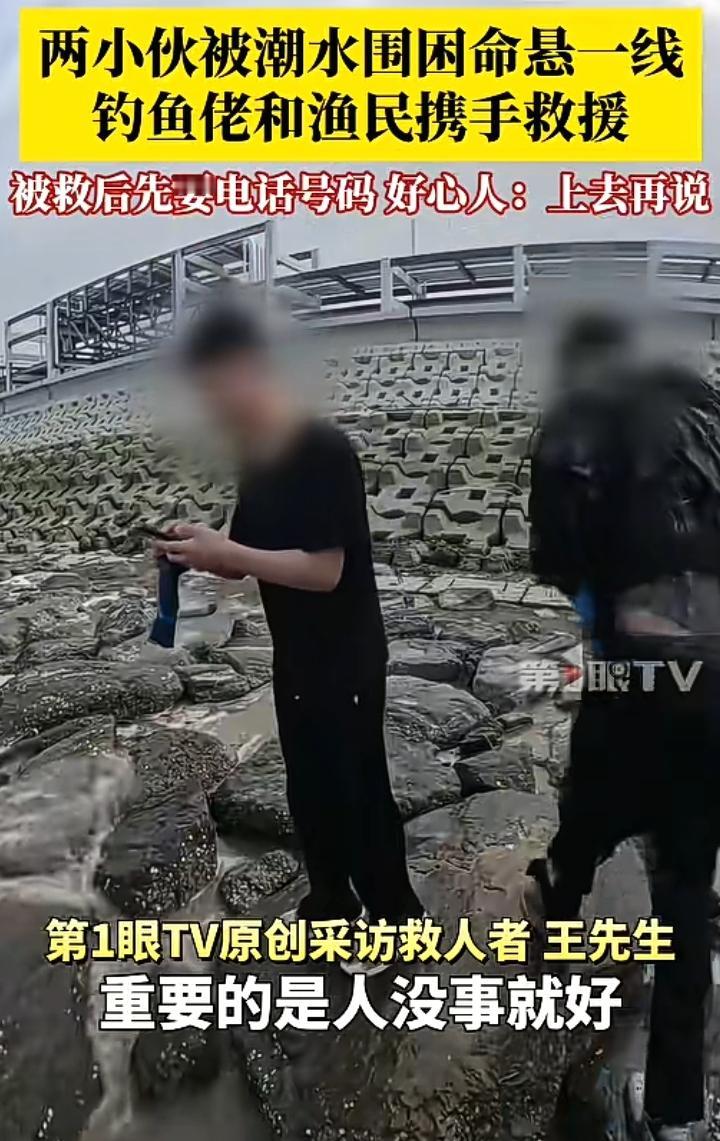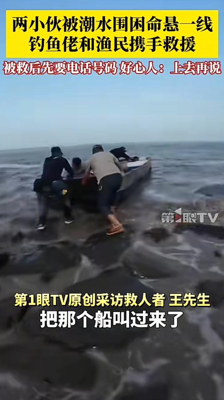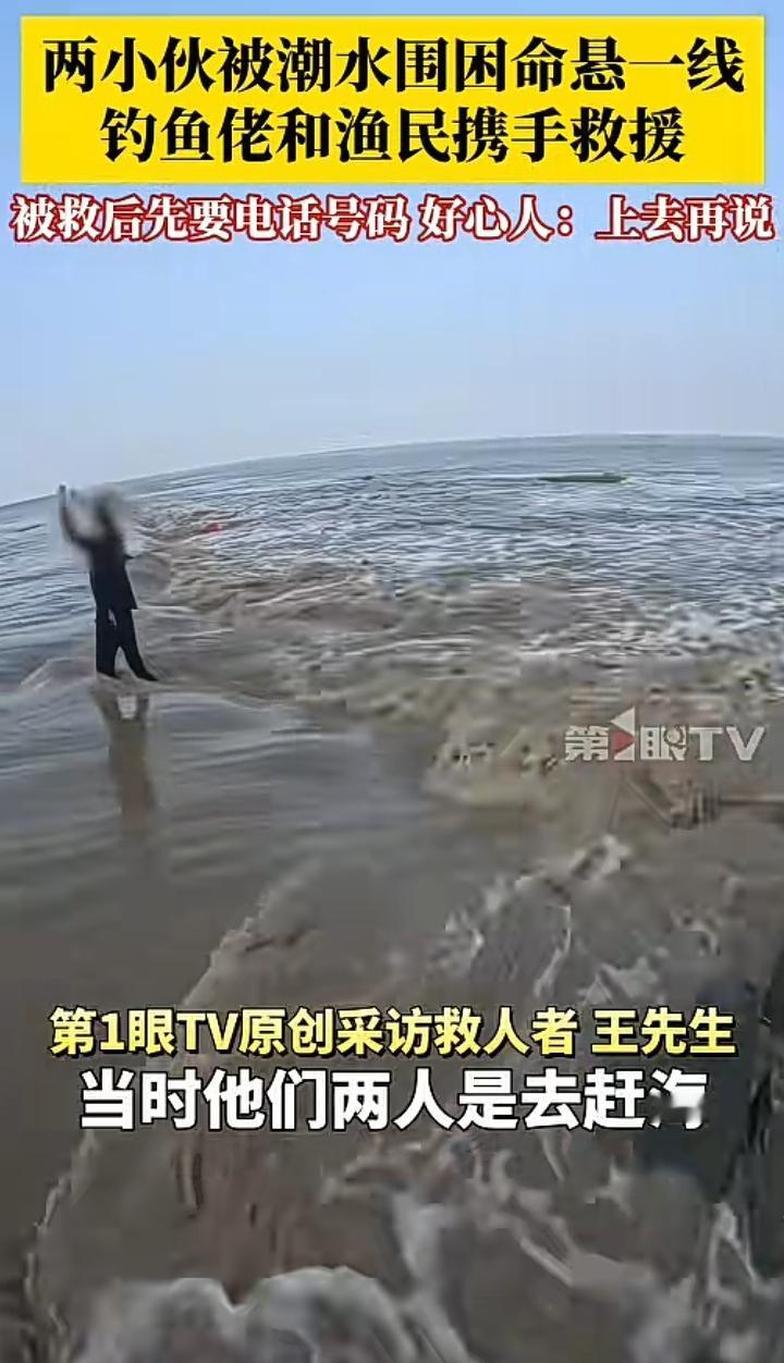 男的有点太不近人情,走的时候电话也不留其实想想也可以理解,两名小伙子去海边赶海,开始的时候潮水不大,他们想着只在边上玩不够刺激。 于是提议敢不敢到里面一点,作为伙伴岂能扫兴,于是两人挽起裤腿沿着海边的落差堤向深海走去,还没走几步忽然潮水猛涨水流速度加快,身体被突如其来的海水袭击,差点打了一个趔趄,其中一名小伙伴说上去吧!可能会涨潮,那名小伙伴说那才刺激,说着大步流星的向前走去。 后面的小伙伴还在犹豫要不要跟上,忽然一股海风吹起,紧接着就是远处波涛汹涌的大浪,感到不妙的他喊同伴立即返回,可为时已晚连他自己都动弹不得,潮水的攻击力远大于他们的想象,此时的同伴离岸边大约80米,而他约有25米,现在只能靠脚下的凸起的石头来稳住身体,一步也不敢动,可潮水越来越大,有刚才的膝盖已经到了腰部的位置,除了大声呼喊没有其它办法,所幸的是附近有两个钓海鱼的听到了,立刻带着游泳圈前来,可潮水势头凶猛,他们也不敢轻易下水,就用绳子系好游泳圈然后到上游把游泳圈投下去,随波逐流到那个小伙子手里,可试了多次都无功而返,就在他们心灰意冷之时决定再试一次,果然不负有心人,离岸边近的小伙子抓住游泳圈就像抓住了救命稻草,两名钓鱼者费劲九牛二虎之力才将他拉上岸,可离的远的小伙子咋办,此刻的潮水已经淹到了他的胸口,情况万分危机,三个人在岸边急的如热锅上的蚂蚁。 可潮水已经不像刚才那样一厘米一厘米的涨而是三厘米四厘米的涨,眼看着那名小伙子就会淹没在海水里,只能说天意如此,就在不远处过来一艘小渔船,三人大声呼喊听到有人求救,船上的渔民立即前往,看到潮水即将淹没的那名小伙子,海水已经到了他的脖颈处,就在他支撑不住的时候渔民一把抓住了他的衣服,两人费劲九牛二虎之力才将第二名小伙子拉到船上,到了岸边他们互留了联系方式,并表示万分感谢,两名钓鱼者看他们已经没事了于是准备离开,可两名小伙子要他们留下微信或者联系方式,被婉拒他们说只要人没事就好。 看到他们齐心协力救人的举动真的让人欣慰,索幸有渔船经过不然后果无法想象,感谢那些在别人需要帮助的时候勇于出手的勇士,好人一生平安。