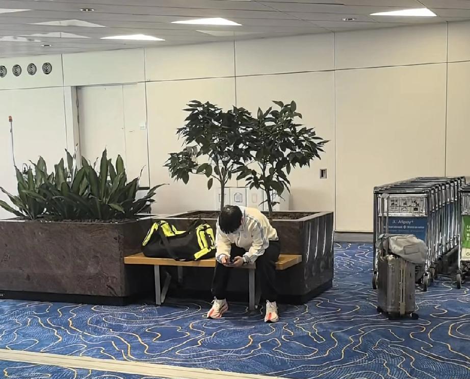 莎莎到香港了,在香港转机 国乒要在香港转机,到香港后莎莎在机场候机,坐在长条凳上看着手机,眼尖的网友发现莎莎手机换了,是红色的OPPO findX9,很亮眼。 莎莎代言的手机已经开始启用了。 莎莎旁边凳子上是老Coco的包,莎莎就像一个给大人看包的孩子。 莎莎到达印度后一定要多注意安全和卫生,健康完赛!