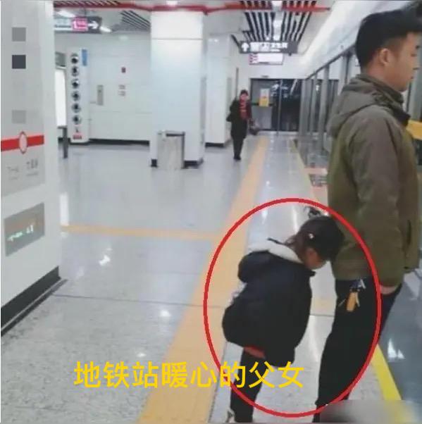 等地铁时女儿爬爸爸身上当“树袋熊” 地铁站的人流像潮水般来来往往,嘈杂的播报声