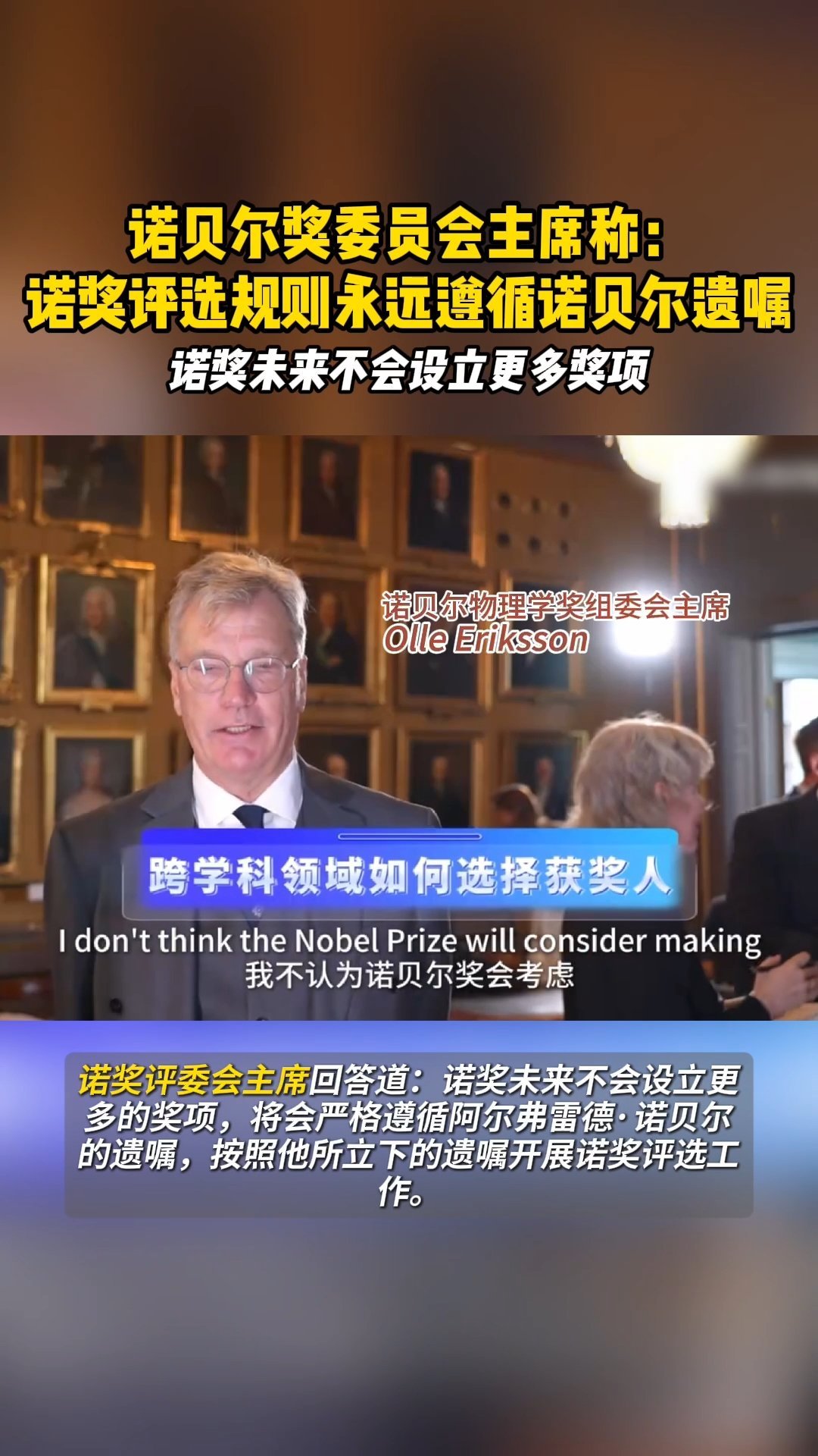 诺奖评选规则永远遵循诺贝尔遗嘱 面对跨界研究浪潮,诺奖以不变应万变,严守遗嘱不增类别,却让物理学奖成为交叉创新温床,传统与突破在此完美共生诺奖未来不会设立更多奖项 ​​​
