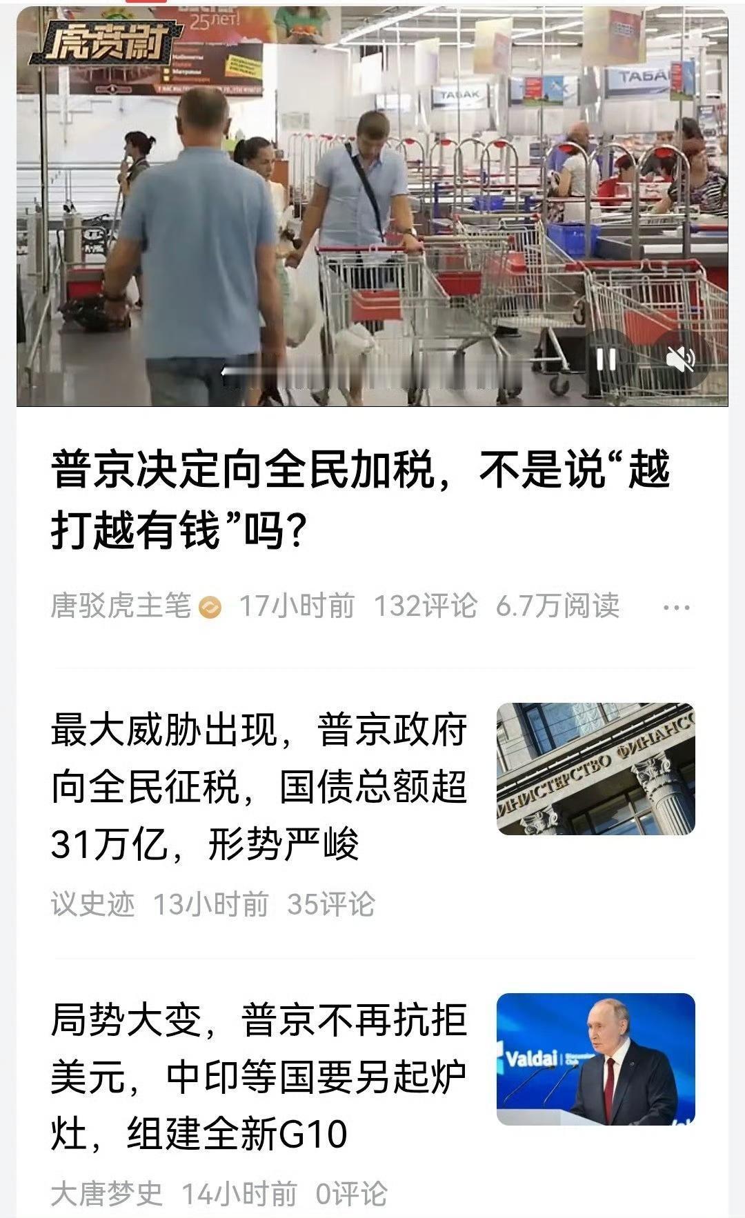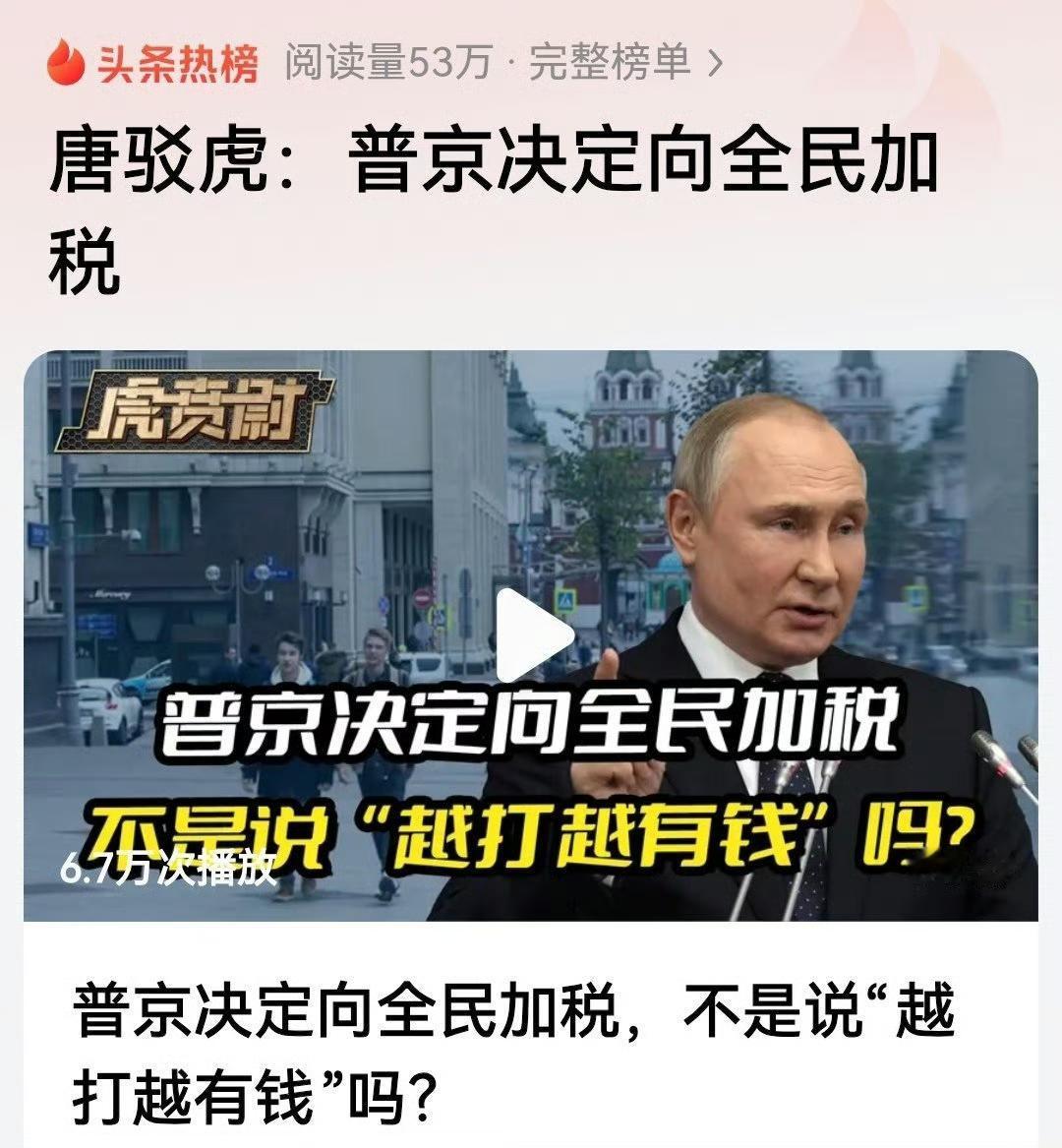唐驳虎说:普京决定向全民加税! 难道俄罗斯缺钱了?