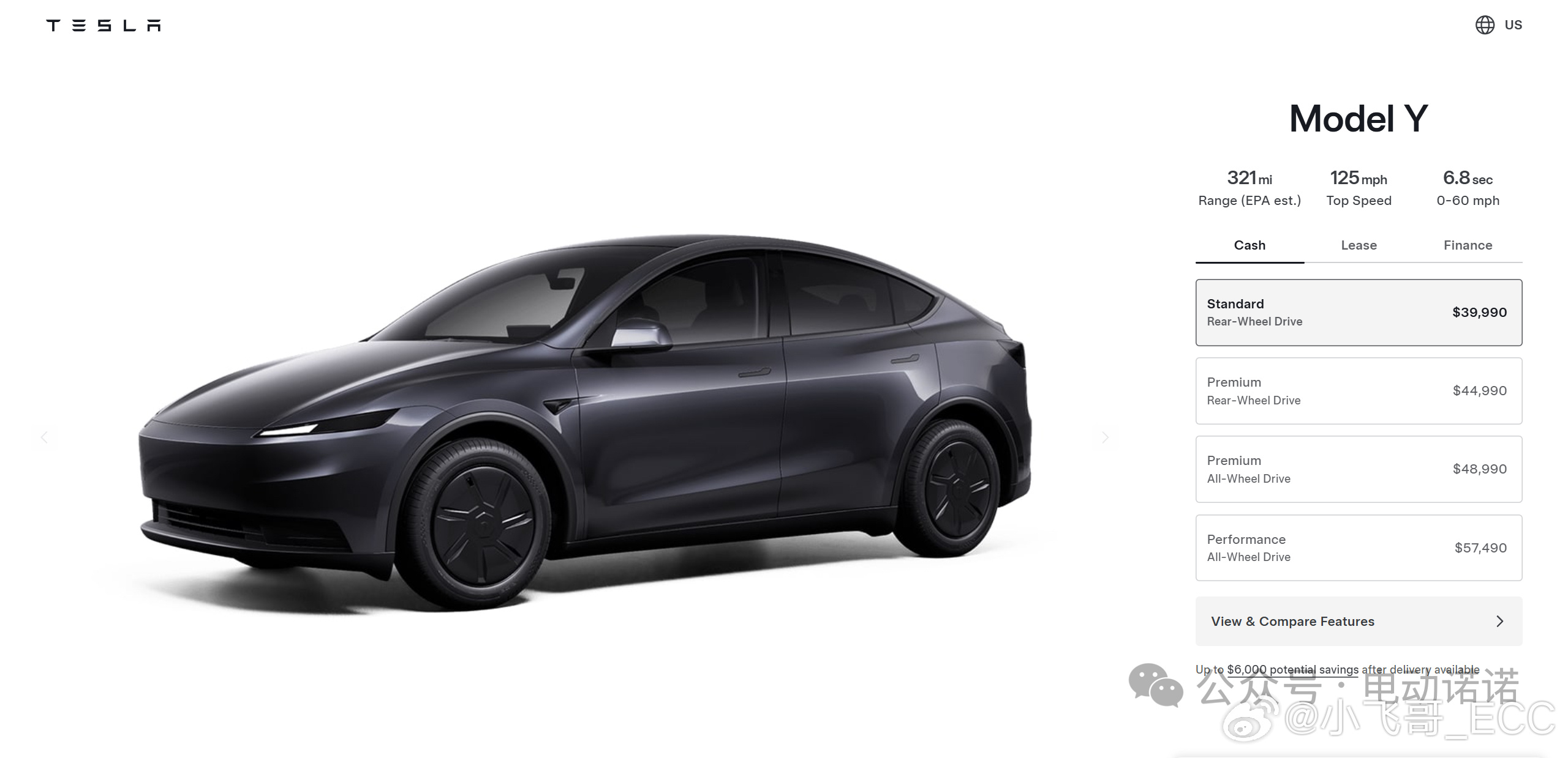 特斯拉青春版Model Y Standard RWD(后驱标准版)