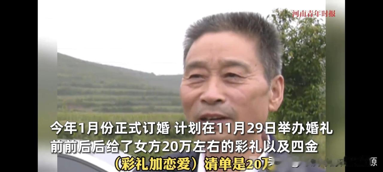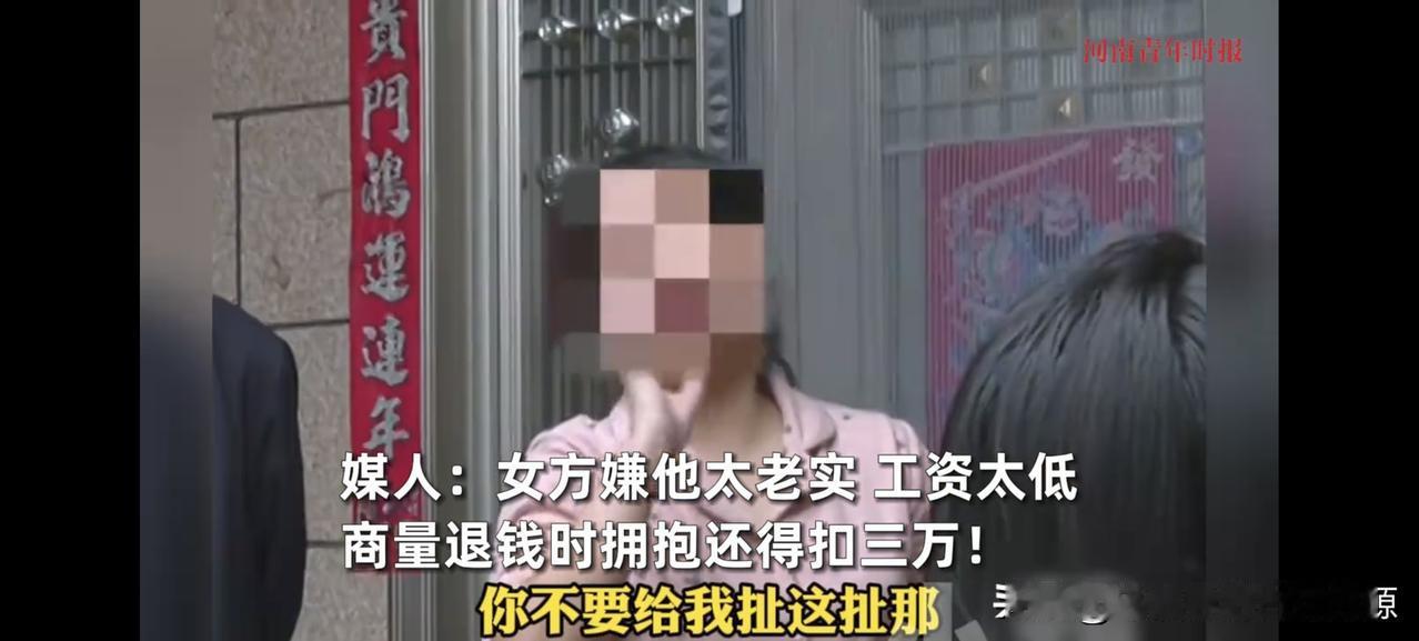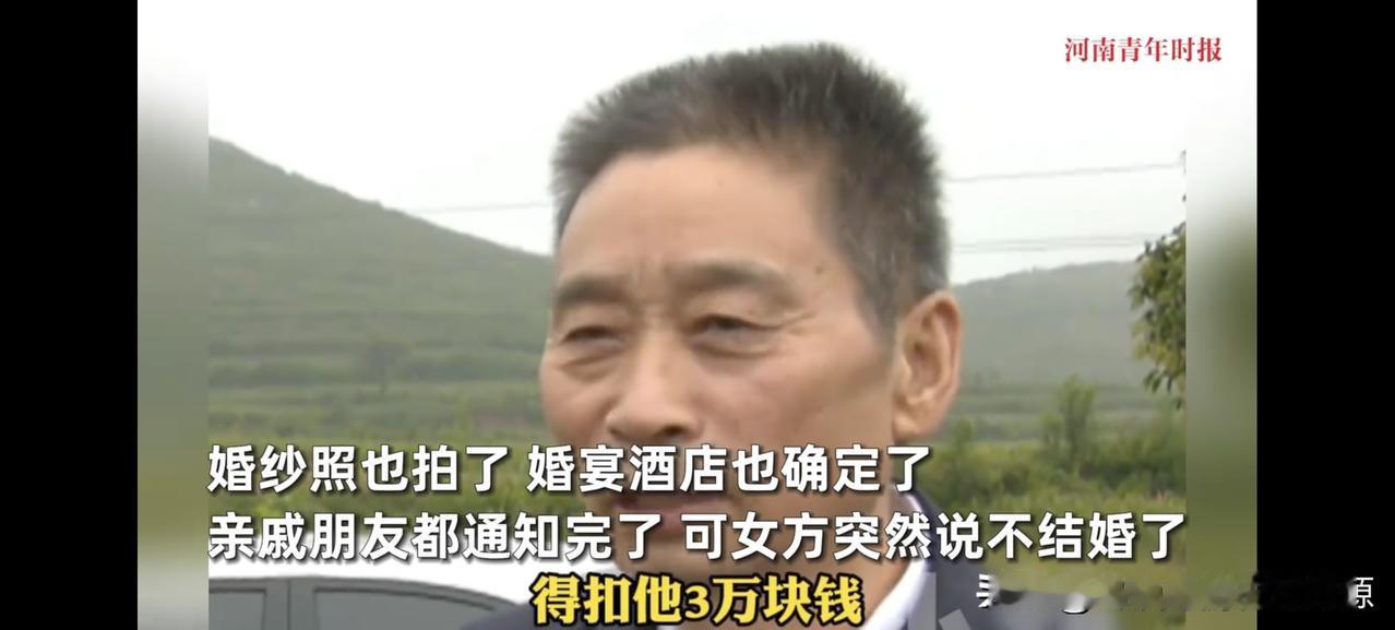 女方反悔不想结婚 ,彩礼钱扣除3万,因为男生抱过她,这是精神损失费 近期在河南的万先生遇到一个糟心事 他经媒人介绍,认识了现在的对象。 目前已经给女方的花费差不多有20万,拍婚纱照,出去吃饭,四金,加上彩礼。 婚宴的酒店也定好了,本来打算是在11月29号就举办婚礼的。 可是现在女方说不想结婚了,这让男方丢面子不说,而且还说彩礼面得扣掉3万块钱。 因为拍婚纱的时候,你抱了我,平常约会的时候,你还摸我的手,这是我的精神损失费。 哪怕面对记者采访,女方依旧豪横的说,这3万块钱不会还。 当时介绍的媒人也搞得里外不是人啊,媒人说,其实就是女方看不上男方,他太老实了,认为男方不行
