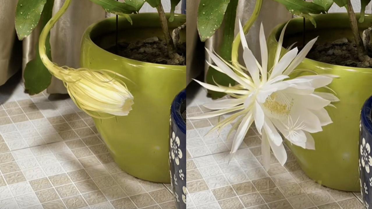 南京女子关灯睡觉时撞见阳台昙花动了!这株妈妈养了三年的花, 终于要 开了——之前