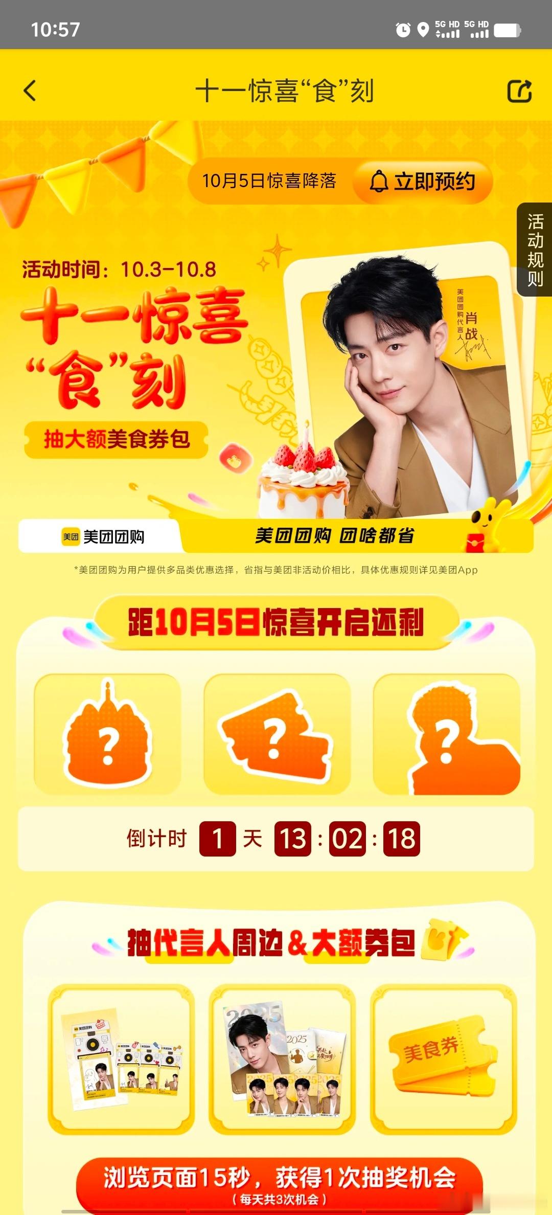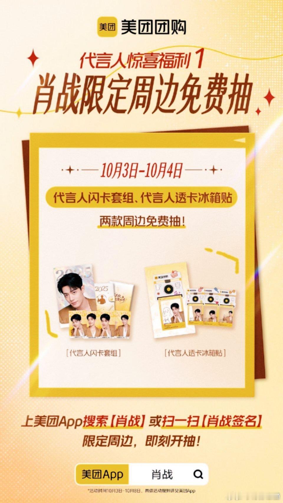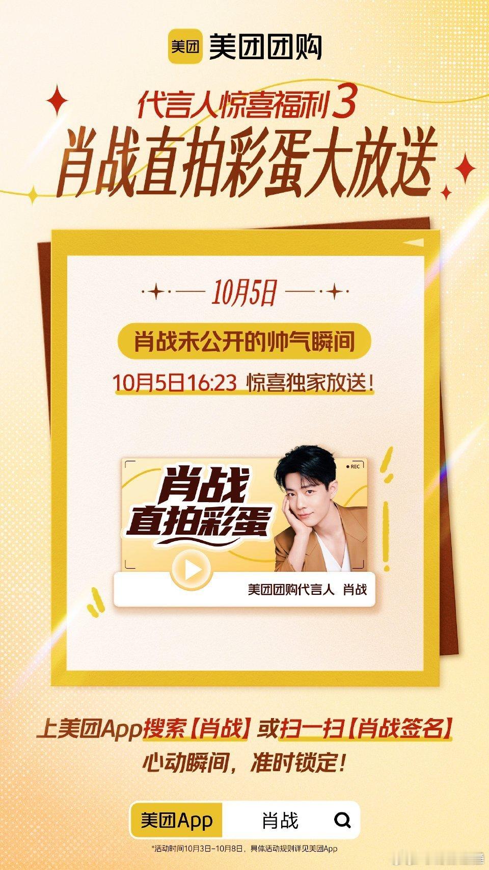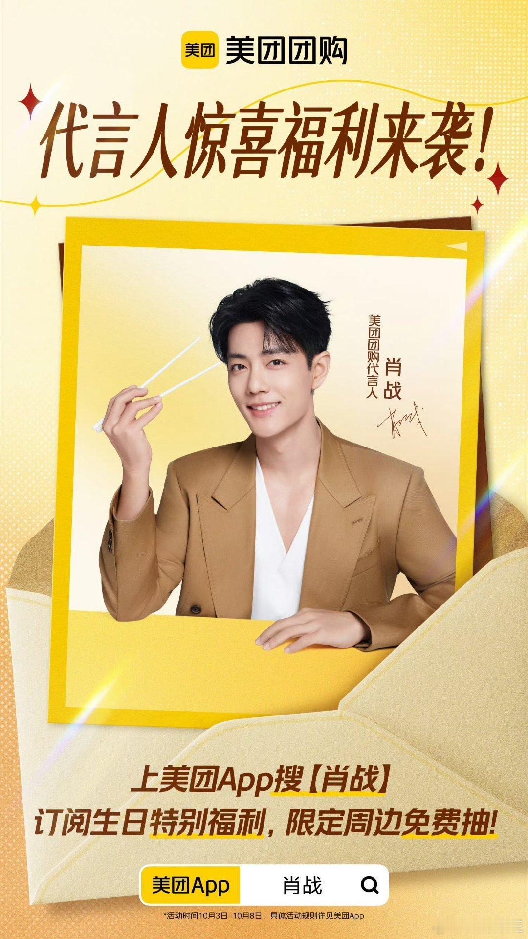 谁懂啊姐妹们!作为美团团购代言人,肖战这次真的带着满满福利来了![太开心]跟着他玩美团,简直福利拿到手软,每天都有新惊喜!