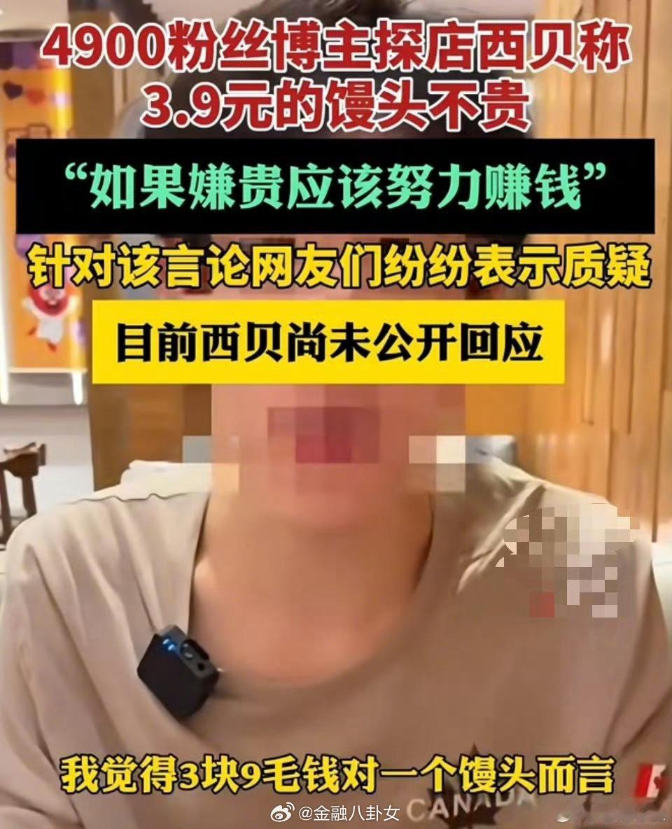 博主为西贝3.9元馒头正名引争议,认为嫌贵应该努力赚钱,并称没吃过西贝的人生不完整[doge]