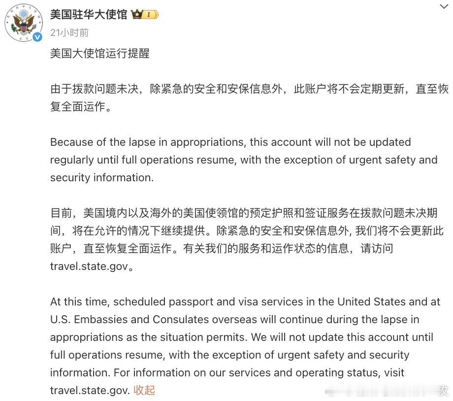 没钱了,美国驻华大使馆宣布停更官方微信、微博!世界是个巨大的草台班子![允悲]热点现场