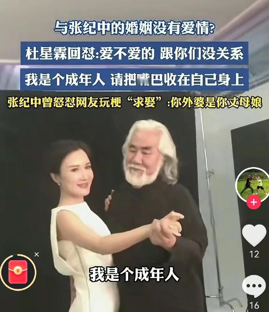 看到网友怼张纪中的这句话, 我实在没忍住笑:“你和老婆相差31岁,你女儿将来找个大她三四十岁的,你急什么?” 74岁的张纪中和43岁的妻子杜星霖刚为一岁女儿庆生,还写了封温情家书,没想到评论区却炸开锅。 一堆人排着队喊“岳父岳母”,甚至有个21岁网友直接说要等他闺女20岁时来娶。 老爷子气得直接回怼:“你还是做你爹和你外公女婿吧”、“你外婆是你丈母娘”。 说实在的,对着才一岁的孩子开这种玩笑,确实有点过分。 但这件事最讽刺的地方就在于——你自己选择了“老夫少妻”这条路,享受了其中的关注与红利,却无法接受别人用同样的逻辑。 这不就是典型的“我可以,但你不行”吗? 其实啊,选择了非常规的生活方式,就得承受它可能带来的所有讨论。好的坏的,都是自己选的路。 与其在线怼网友,不如别出来,不蹦跶就是对自己女儿最好的保护。 74岁 还有个1岁的女儿,也是超过99%的人了 大家觉得呢?欢迎评论区聊聊