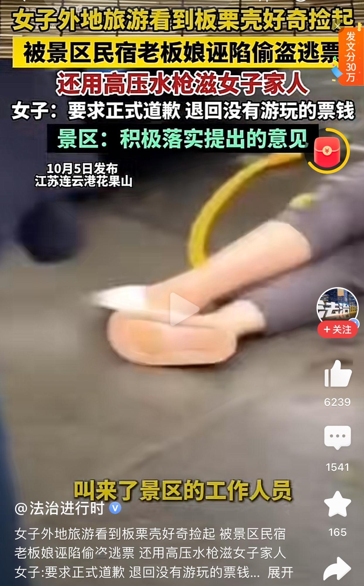 注意了,花果山讹人家300块钱的民宿已经改名字了,整改估计是没有的,建议举报,名字和营业执照要完全一样才可以的,营业执照没那么快下来,现在举报八成得停业整顿。 这家人就是祸害,下次不知道会讹谁呢,就是欺负外地人,派出所也是帮凶,这么明显的讹人套路居然不法办诬告者,反过来帮恶人获得300块。 如果你们没见过板栗壳我可以给你们寄一点,锥栗壳也可以寄一点,不用大老远跑那么危险的地方捡。