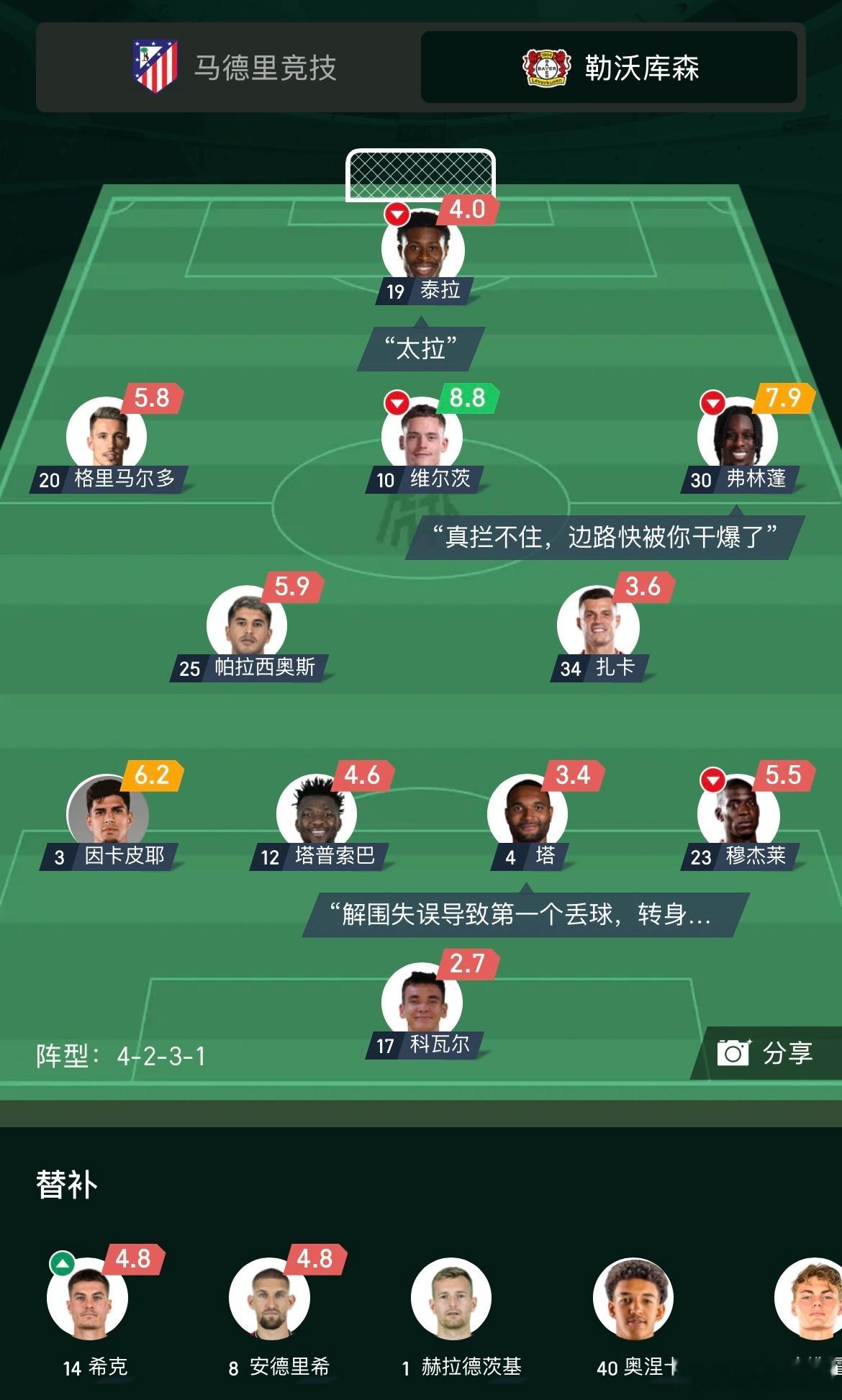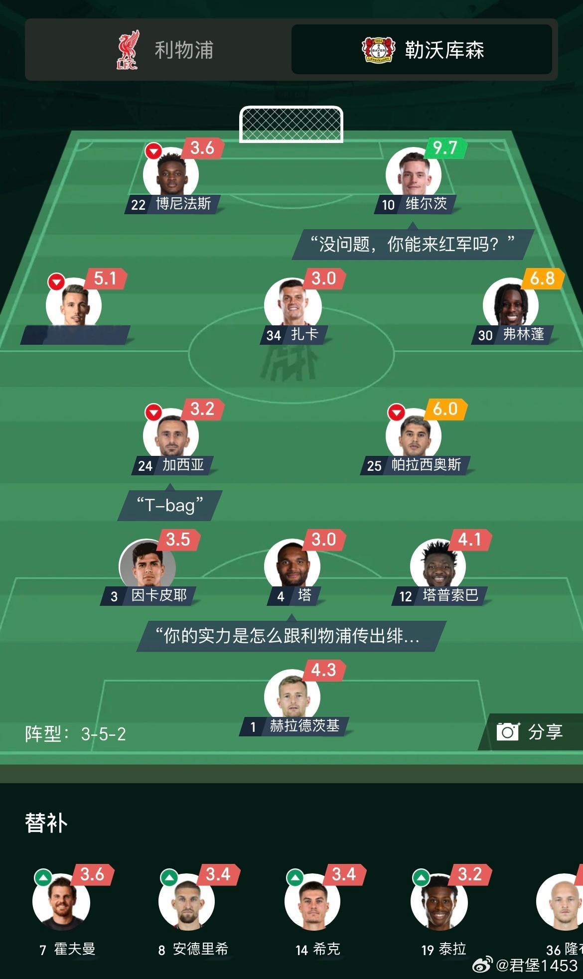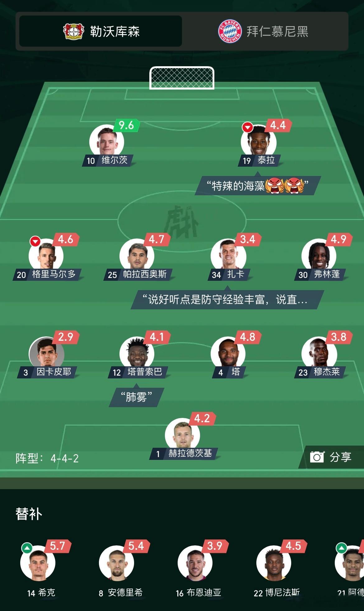 最后,这个球队阵容页面里看不到的,那就是裁判永远是被骂偏袒勒沃库森。