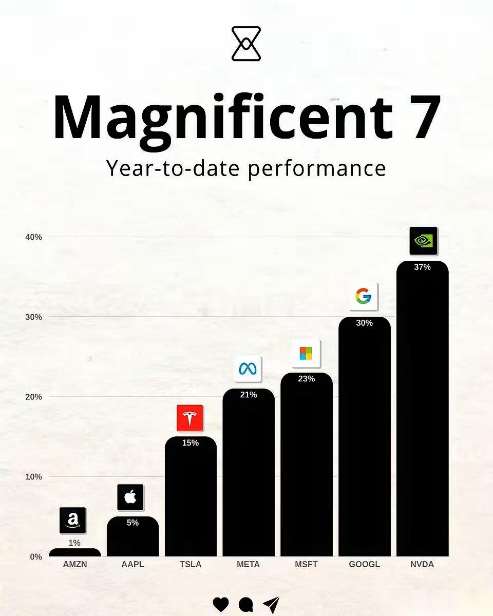 真的,太分裂了。英伟达今年涨了快40%,亚马逊才1%。一个天上,一个地下。再看看