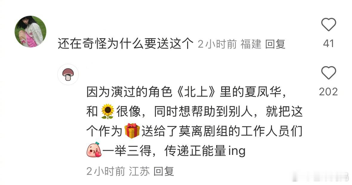 白鹿给莫离剧组送的杀青礼物是无指妈妈的手工向日葵,好有意义的礼物!!人美心善白梦妍🥹