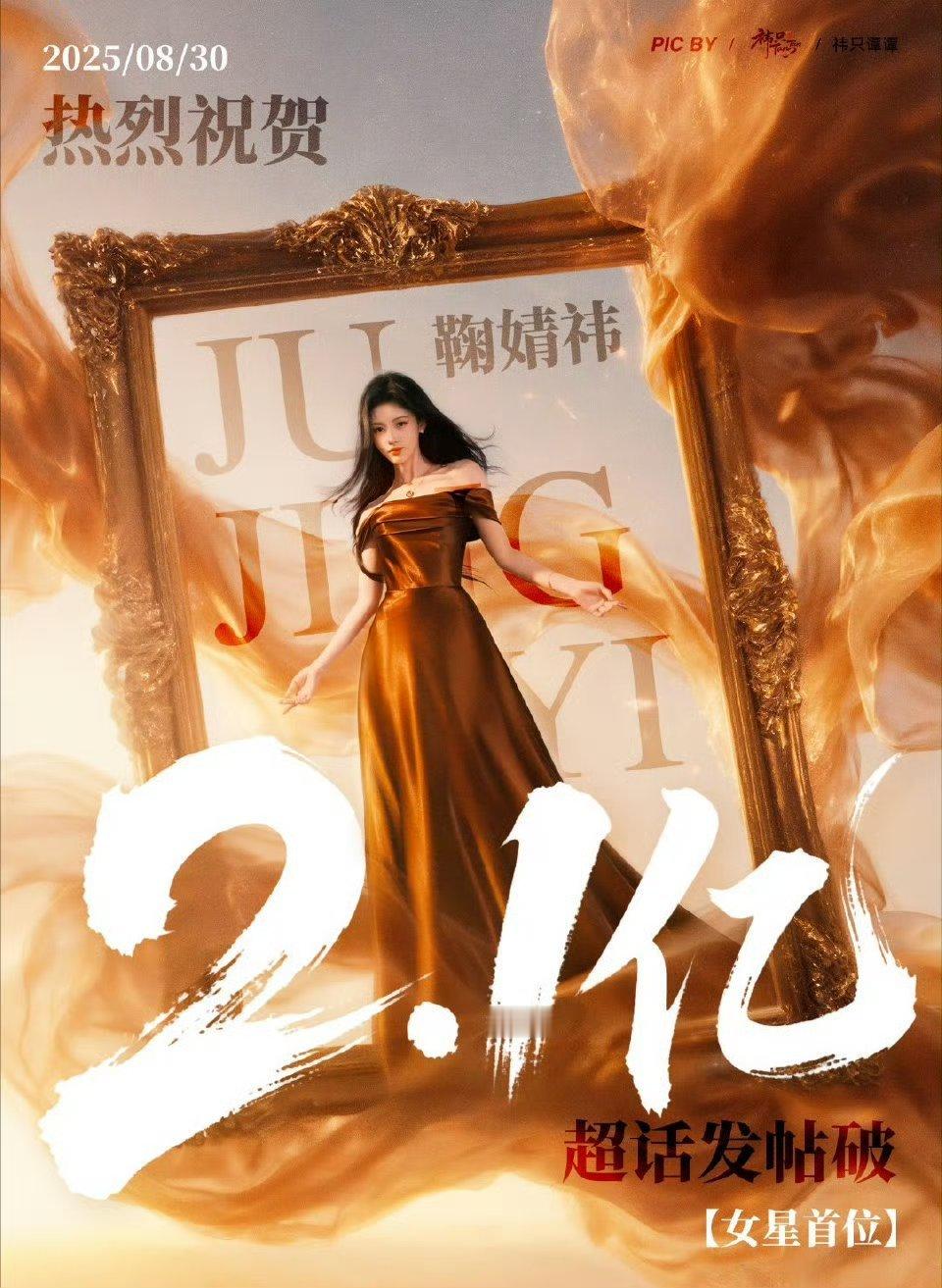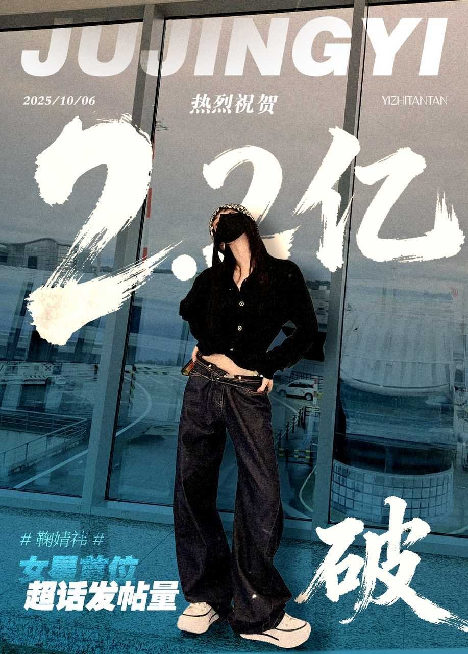 鞠婧祎超话发帖量2亿到2.2亿实绩图目前女星里依旧是首个破2亿的