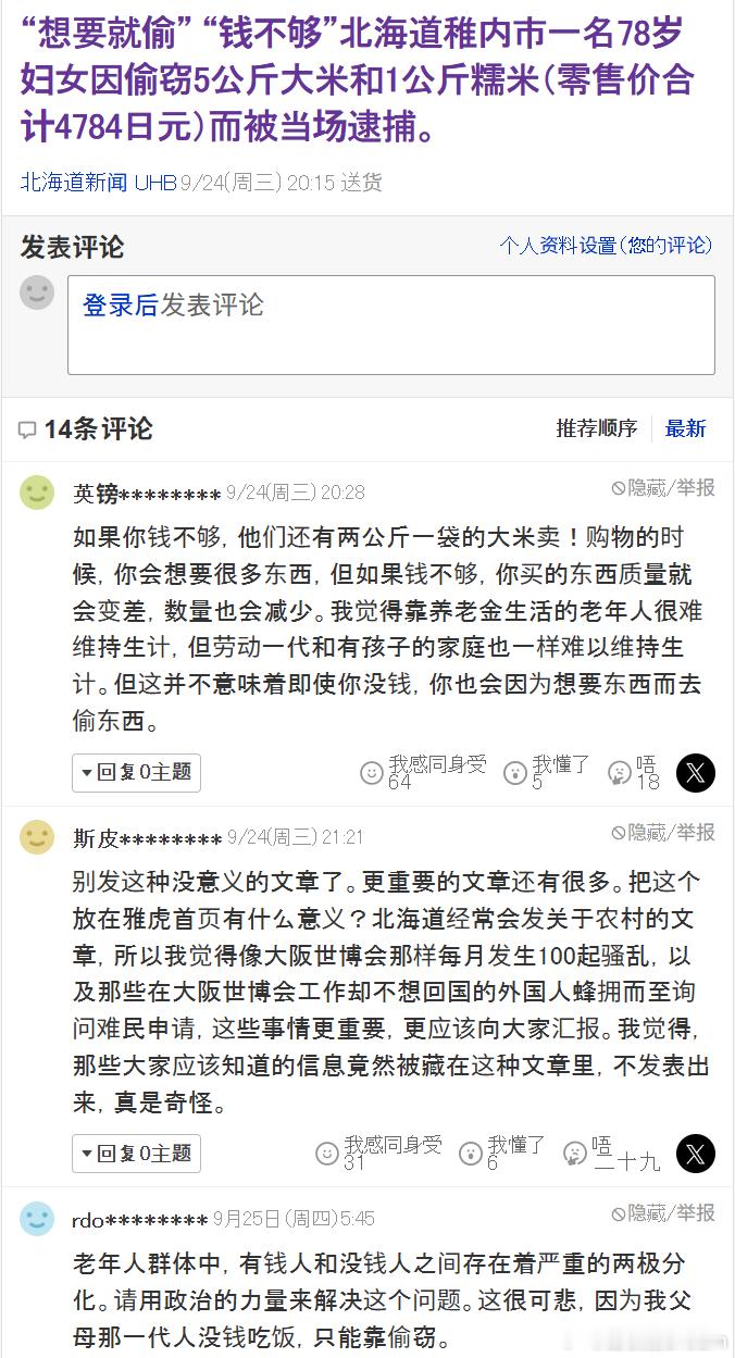 🔻有日本网民感同身受:我的父母那一代人没有钱吃饭,只能靠偷窃。