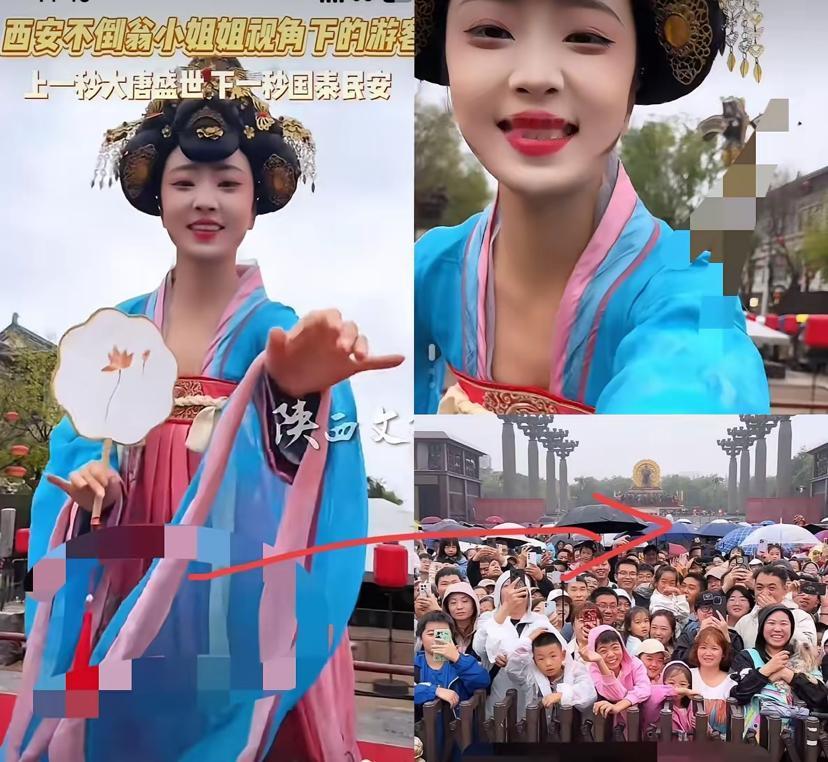 近日,西安大唐不夜城,不倒翁小姐姐表演时,竟然一时兴起,把游客手机抢了过去,将镜