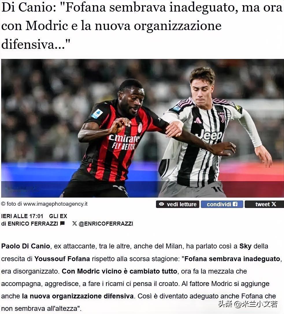 福法纳!莫德里奇加盟米兰之后,现在看来受益最多的球员为福法纳,福法纳在莫德里奇加盟米兰之前看起来不够格,他的组织很混乱。个人觉得不是福法纳不合格,而是让福法纳在中场组织的人不合格,福法纳有组织能力吗?福法纳就是一个典型的B2b球员,让他防守都要考虑福法纳缺乏覆盖能力问题,让福法纳干其他的肯定是干不明白。 有了莫德里奇在身边,福法纳一切都变了。现在福法纳在中场支援队友、积极逼抢,而精妙的组织进攻就交给克罗地亚人来完成,福法纳也变得称职了。当年有伊布拉希莫维奇在诺切里诺与王子看起来也是非常称职的中场球员,在巨人身边他自然能带着你踢球,记得第一场比赛把莫德里奇都踢无奈了,几次看到莫德里奇在指挥队友如何跑位,最近好多了,身边人确实越踢越好。 现在不用说谁表现越来越好,还是和伊布拉希莫维奇当年相同,伊布拉希莫维奇离开后诺切里诺就彻底不会踢球了,现在要考虑的是莫德里奇离开后我们怎么办。
