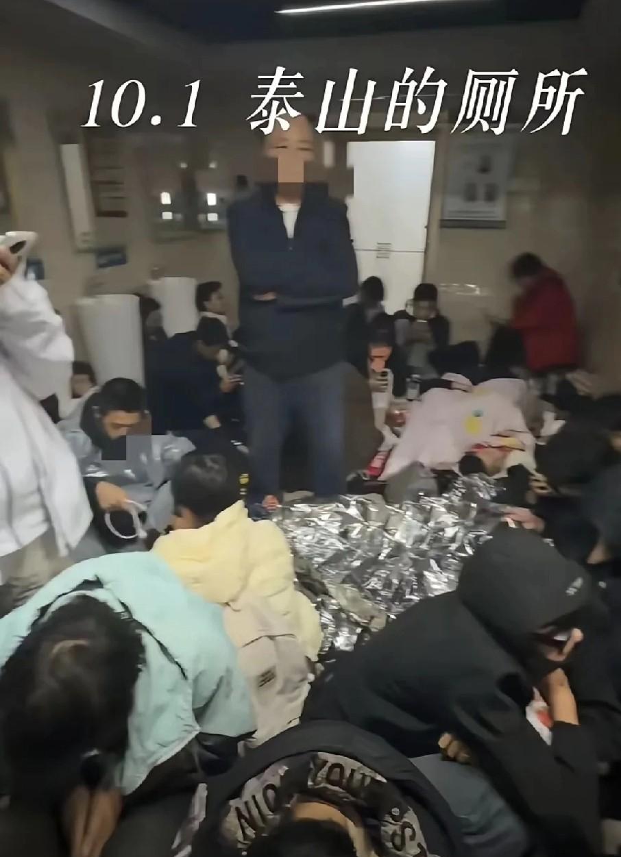 看,这就是我长假期间不去旅游的理由! 一边是无处如厕; 一边是挤在厕所里休息加过夜; 每年长假,我除了回300公里左右的老家,然后就是在老家的躺椅上看高速上的各种堵车、各处景点的各种人山人海…… 那时,我就在想一件事: 除了必须的节日回老家探亲外, 真有有必要去各处景点“旅这个游”吗? 你看高速长龙,有人憋不住了直接就地解决。 你看景区突降大雨,气温骤降,有人扛不住了,直接在厕所挤暖…… 朋友说,这次泰山顶的厕所,没敢进去,走到门口给我熏出来了!硬生生憋到下山!佩服能在厕所睡觉的人[尬笑]。 大家说说,年年如此,为啥年年还有这么多人花钱买罪受呢?