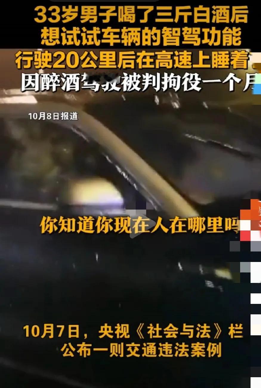 真是胆大包天,作死的节奏啊!不过,想作死别上高速啊,一旦发生事故,后果不堪设想!你让高速路上别的司机和车怎么活呀! 我认为,无论是否开启辅助功能,只要饮酒后启动车辆并行驶,即构成酒驾。即便使用智驾功能,驾驶员仍是责任主体。 再有,公安部明确表示:辅助驾驶阶段需全程保持注意力,脱手脱眼将面临民事赔偿、行政处罚及刑事责任。 另外,智能驾驶无法替代人工操作,酒后驾车风险极高。